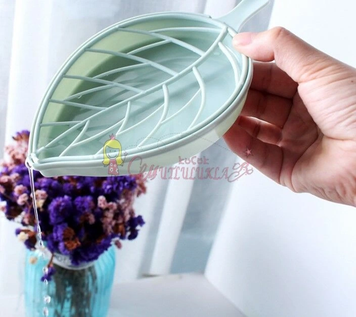 Yaratıcı yaprak şekli sabunluk drenajlı sabun kutusu banyo aksesuarları
