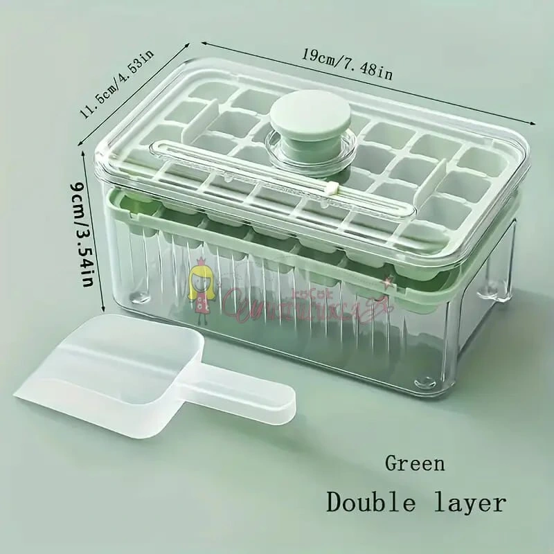 Yeni Nesil Basmalı Çift Buz Kalıbı Buzluk – Kapaklı Saklama Kutulu 56 Bölmeli Hazneli Buz Küpü buz kalibi