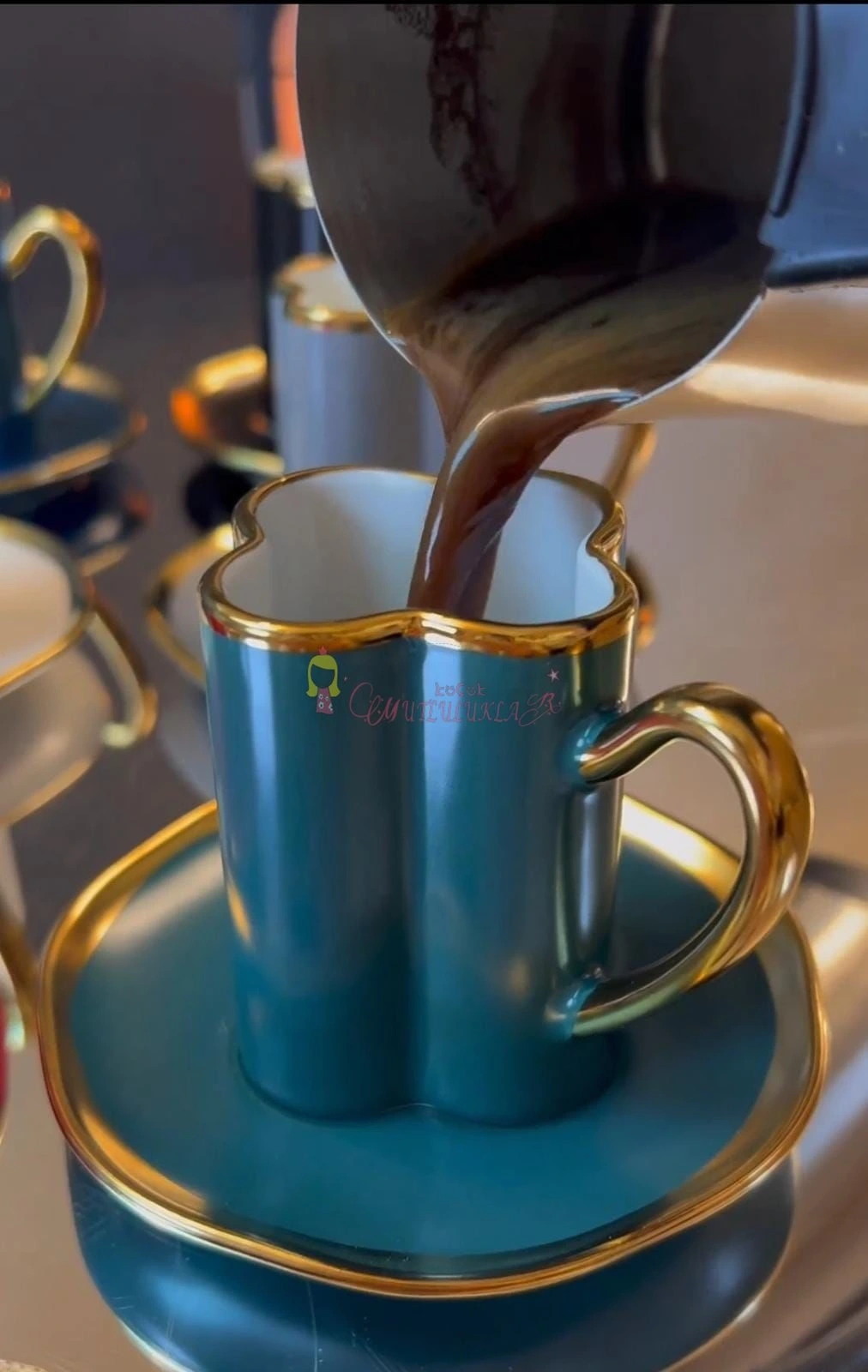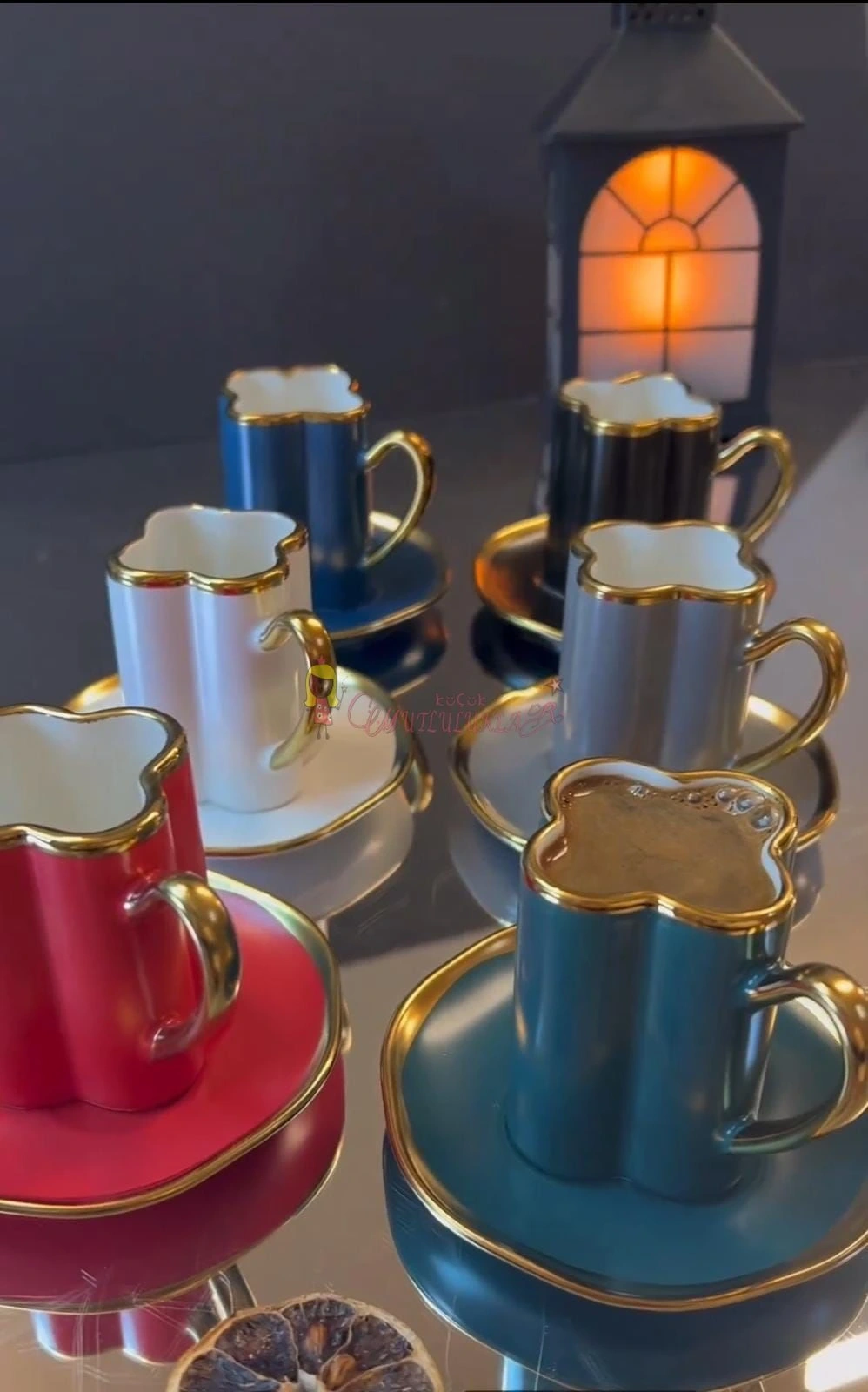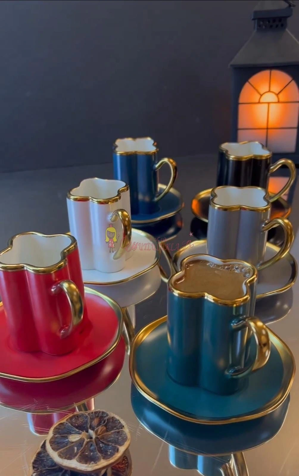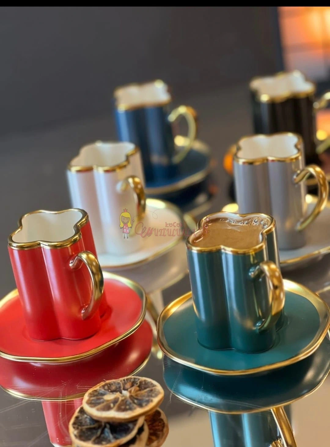 Tabaklar renkli fincanlar RENKLI ve yaldiz detaydir.