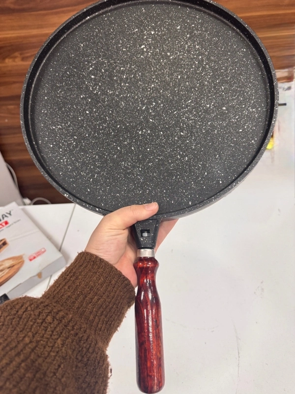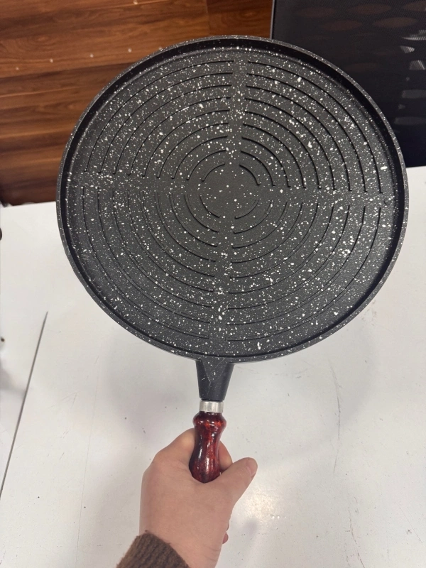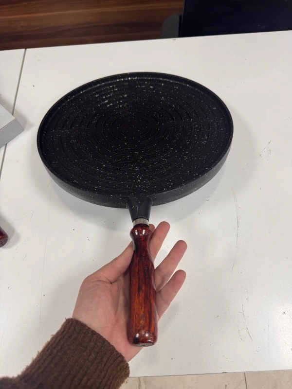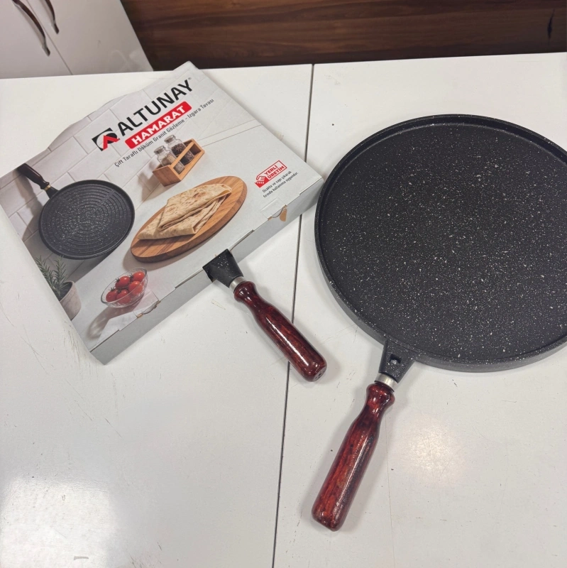 Yeni Model Vernik Saplı Hamarat Çift Taraflı Döküm Bazlama Gözleme Tava 34 Cm