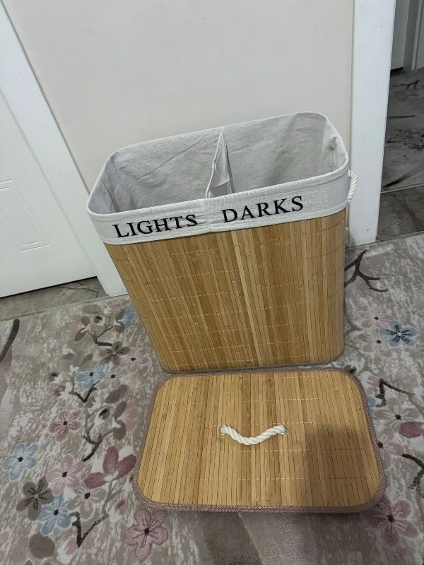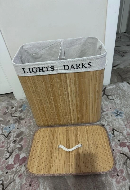 KATLANABİLİR KİRLİ ÇAMAŞIR SEPETİ KAPAKLI YIKANABİLİR ASTAR 32X52X60 SİYAH-BEYAZ KİRLİ-TEMİZ BAMBU ÇAMASIR SEPETİ