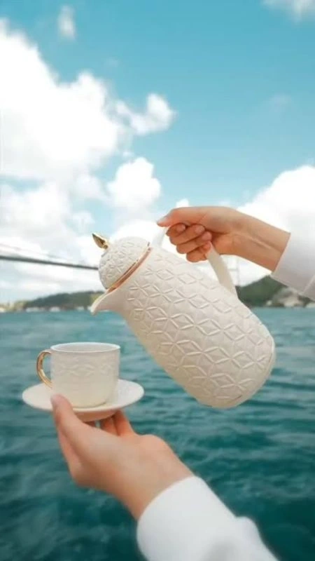 Çift Cidarlı Kulplu Süslü Cam Bardak