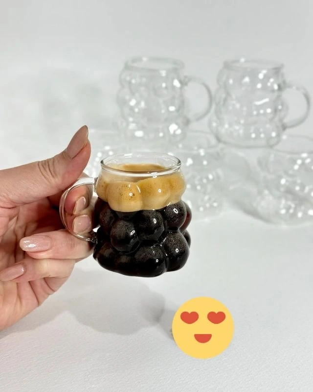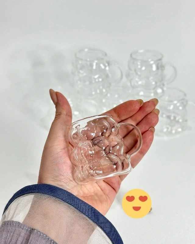 Çift Cidarlı Kulplu Süslü Cam Bardak