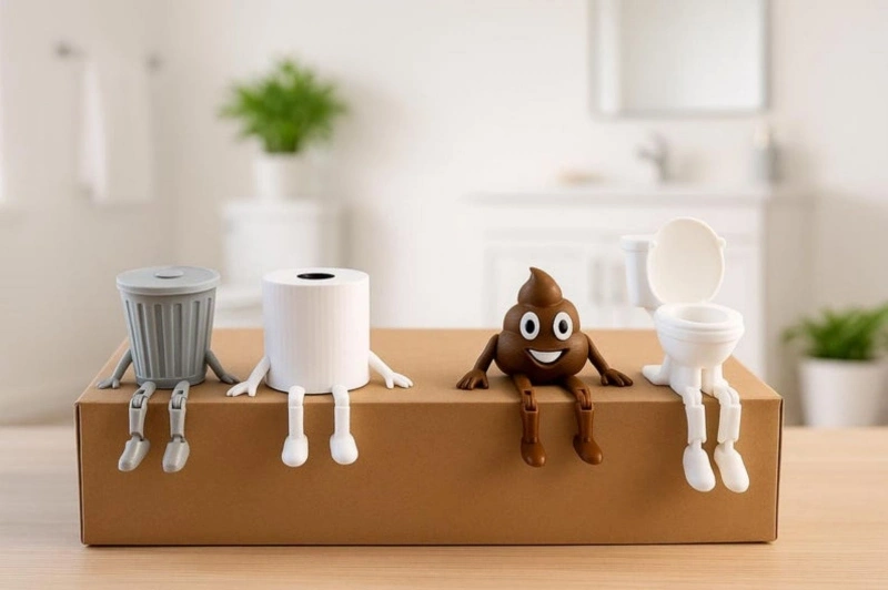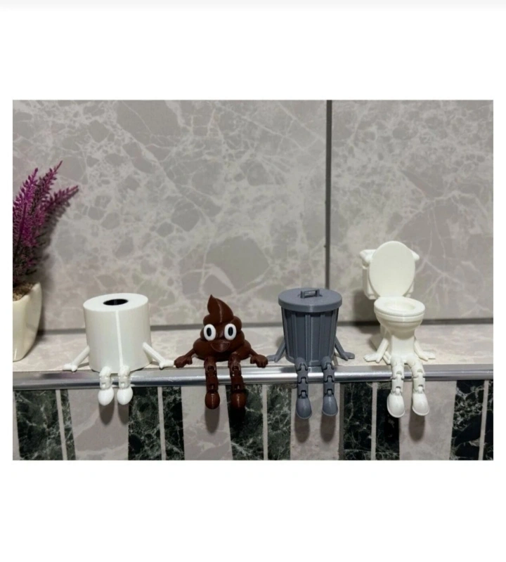 Sevimli Oturan Biblo Figürler 4'Lü Dekoratif Banyo Seti
