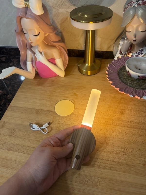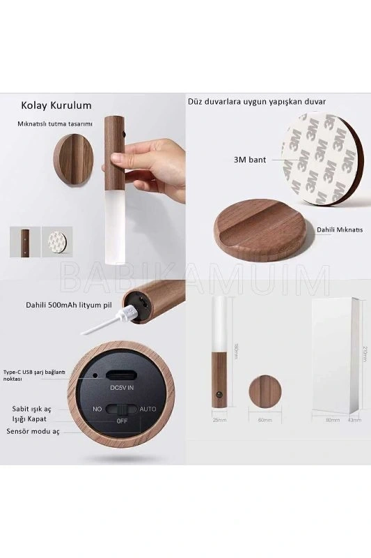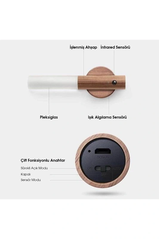AHŞAP GÖRÜNÜMLÜ SENSÖRLÜ ŞARJLI APLİK LAMBA