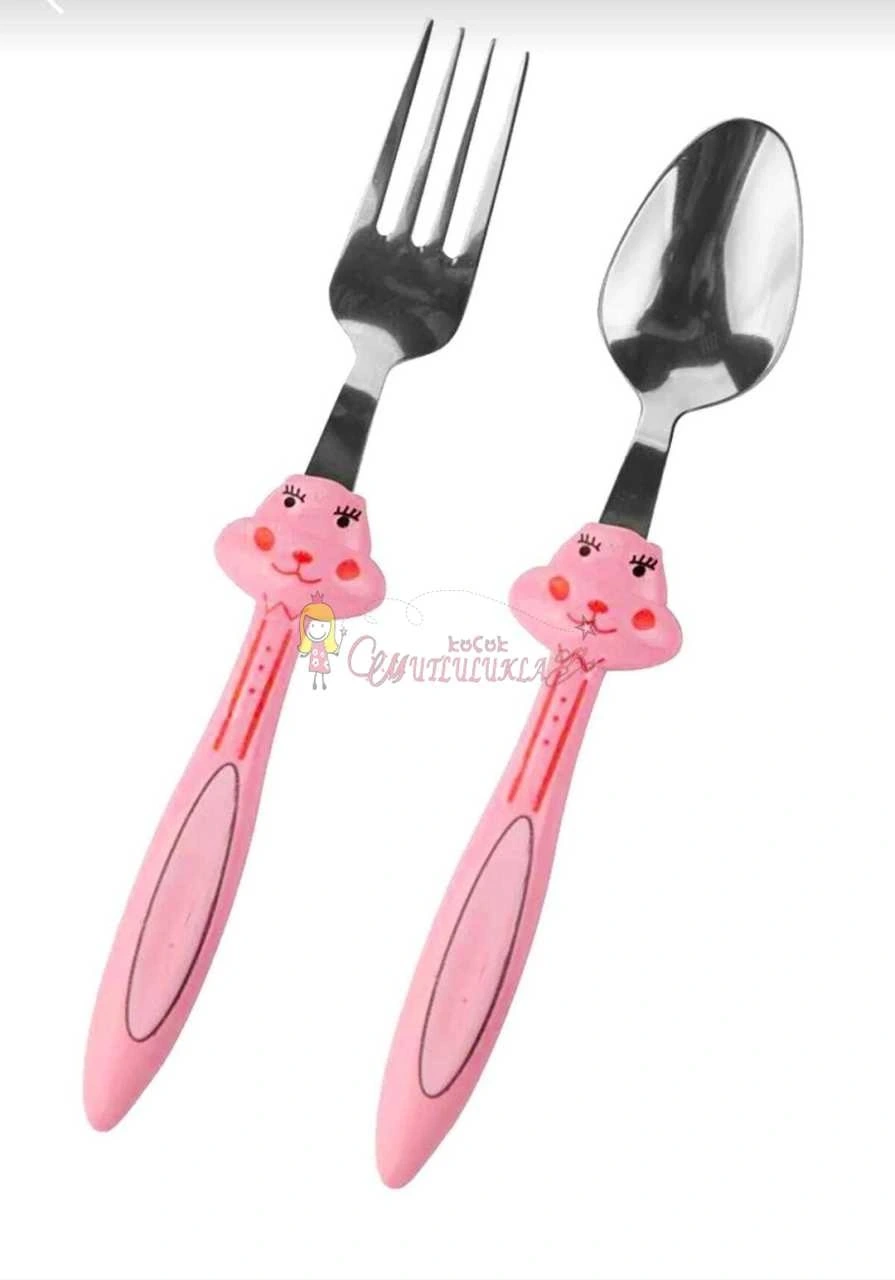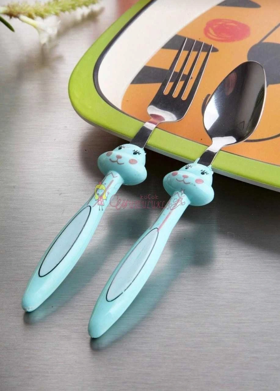 Bebekleriniz için sevimli hayvan figürlü çatal ve kaşık seti.