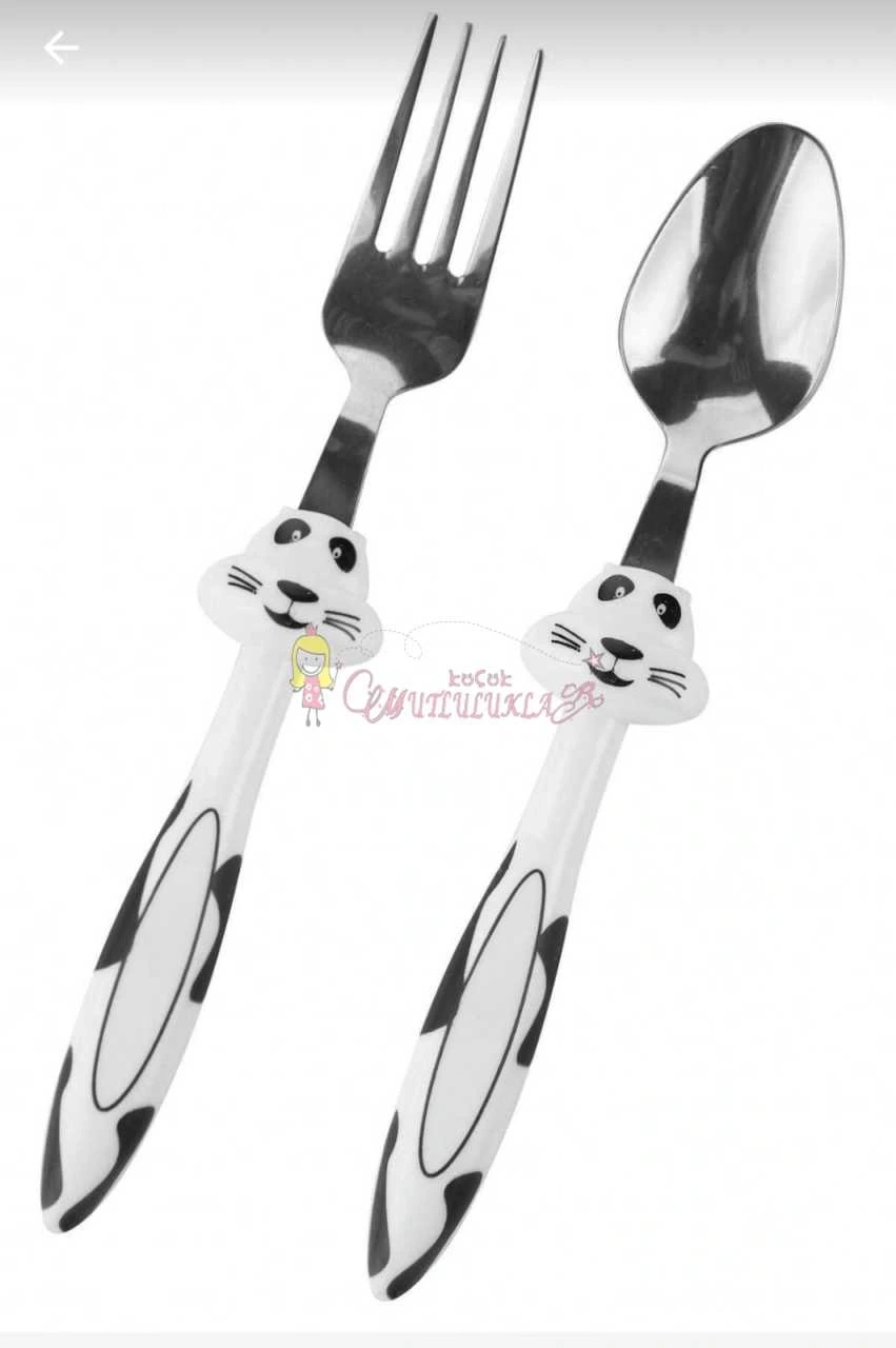 2 Li Hayvan Figürlü Bebek Kaşık Çatal Mama Seti