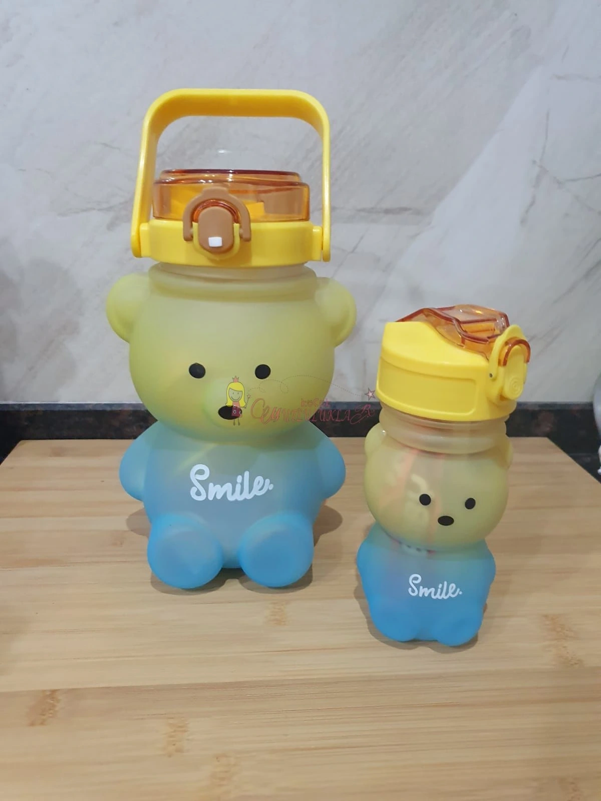 • 2’li Smile Ayıcık Model Su Matarası Yavrulu Su Şişesi Suluk 800ml-250ml