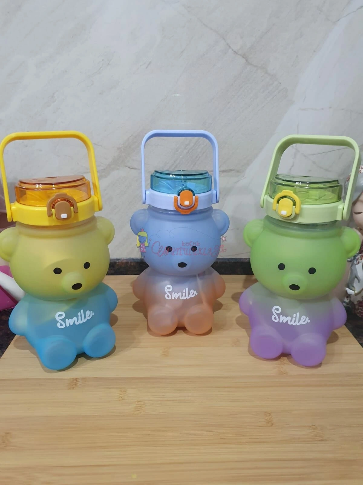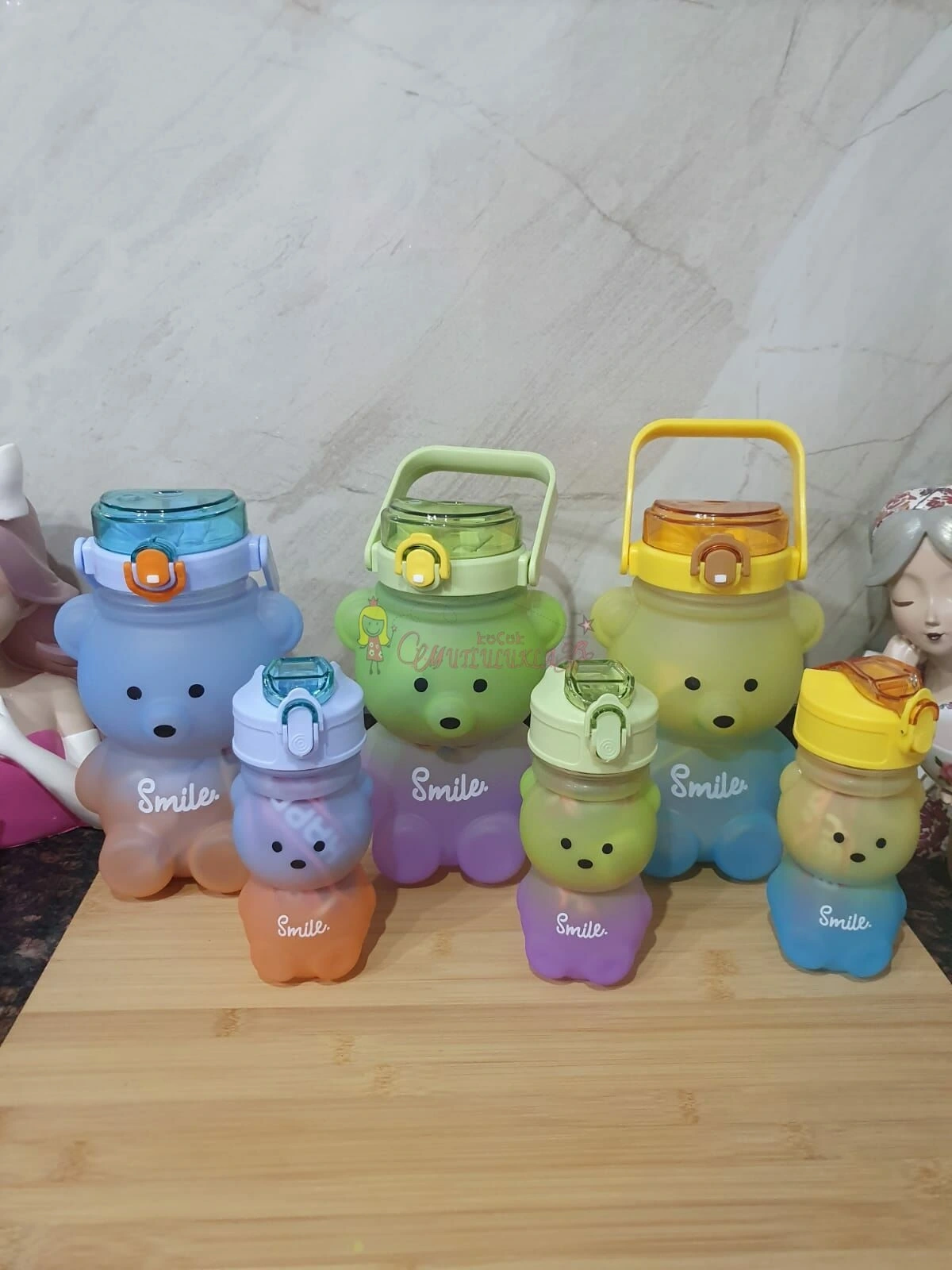 2’li Smile Ayıcık Model Su Matarası Yavrulu Su Şişesi Suluk 800ml-250ml