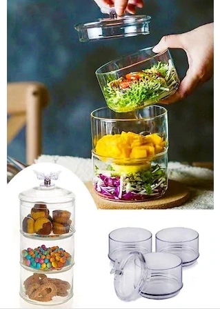 3 Katlı Akrilik Kavanoz Saklama Kabı