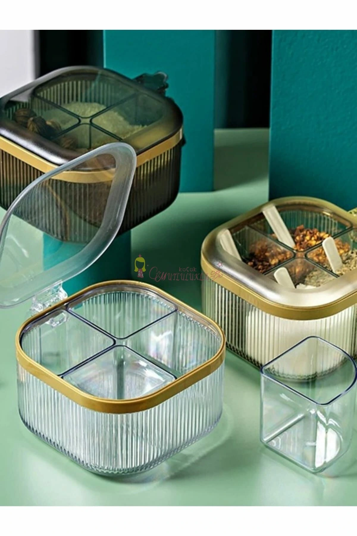 •  4 Bölmeli Plastik Baharatlık Ölçü 14 cm x 14 cm x 8 cm