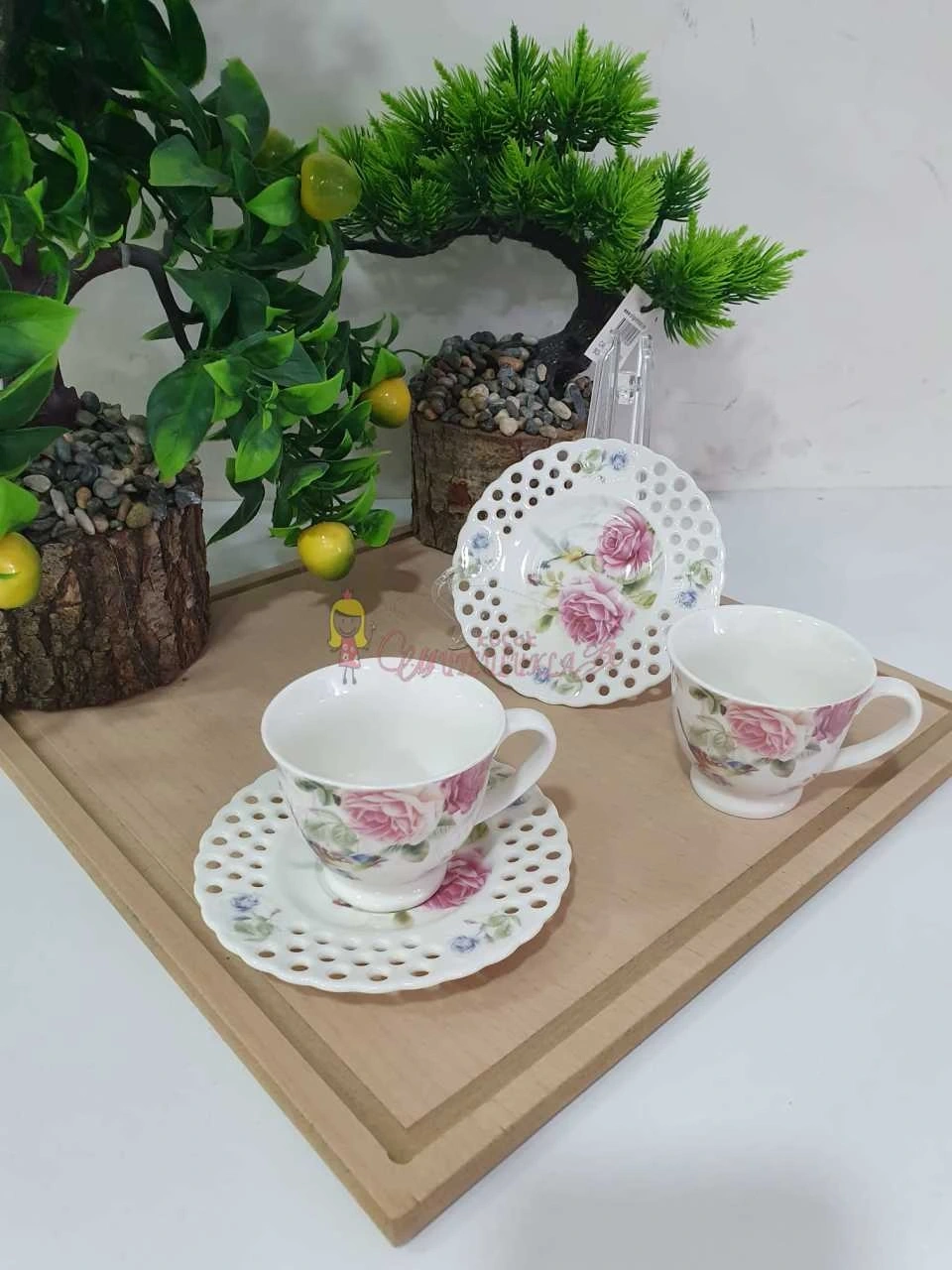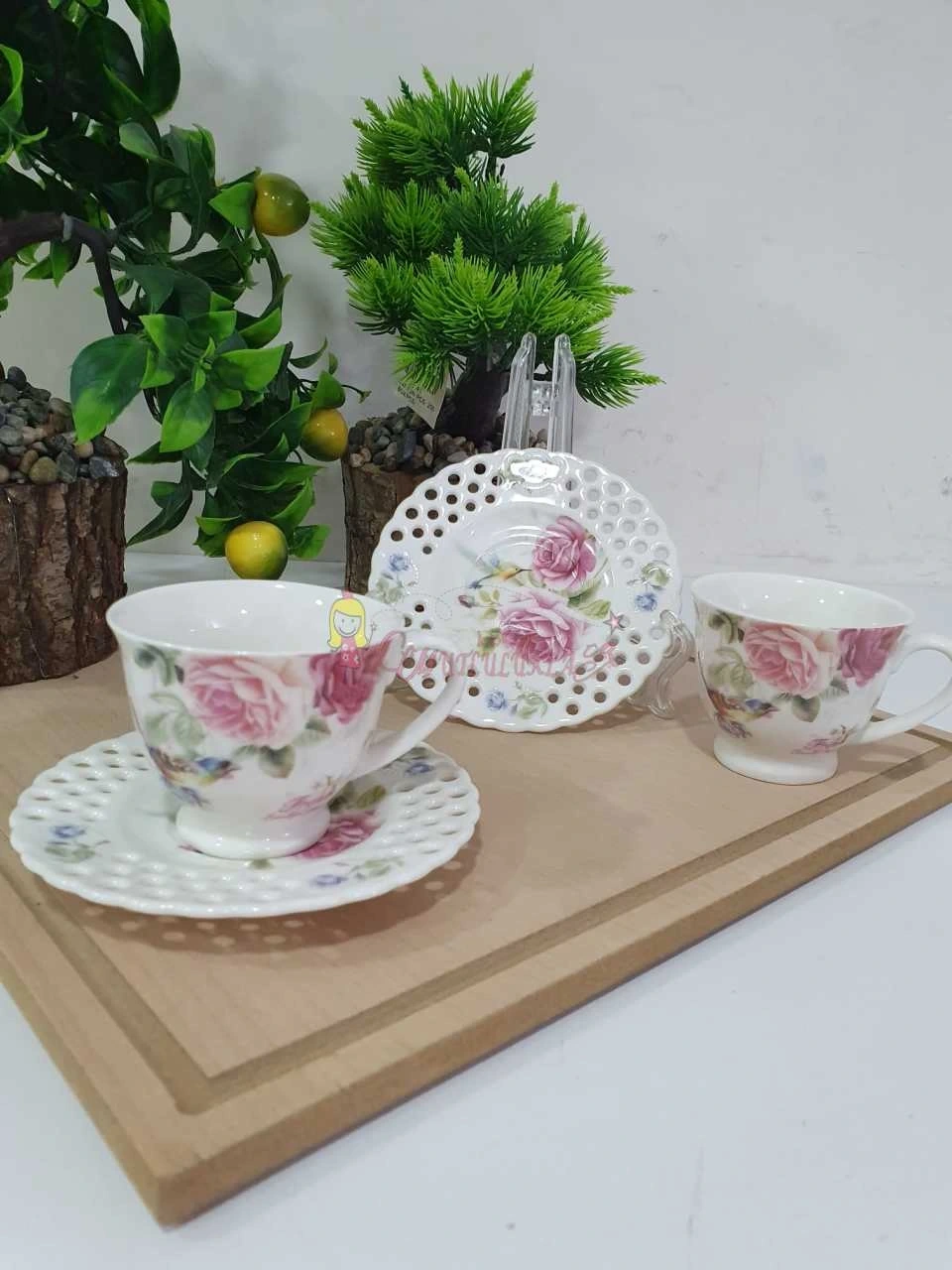 6'LI FİNCAN TAKIMI GÜL DESENLİ
