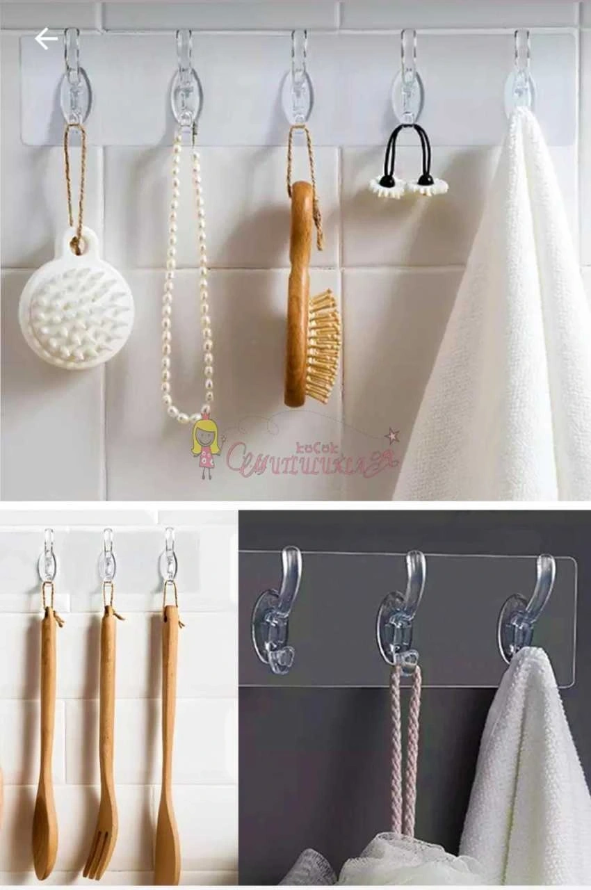 5'li İz Bırakmayan Güçlü Yapışkanlı Şeffaf Duvar Askısı Banyo Mutfak Düzenleyici Pratik Kanca Askılık