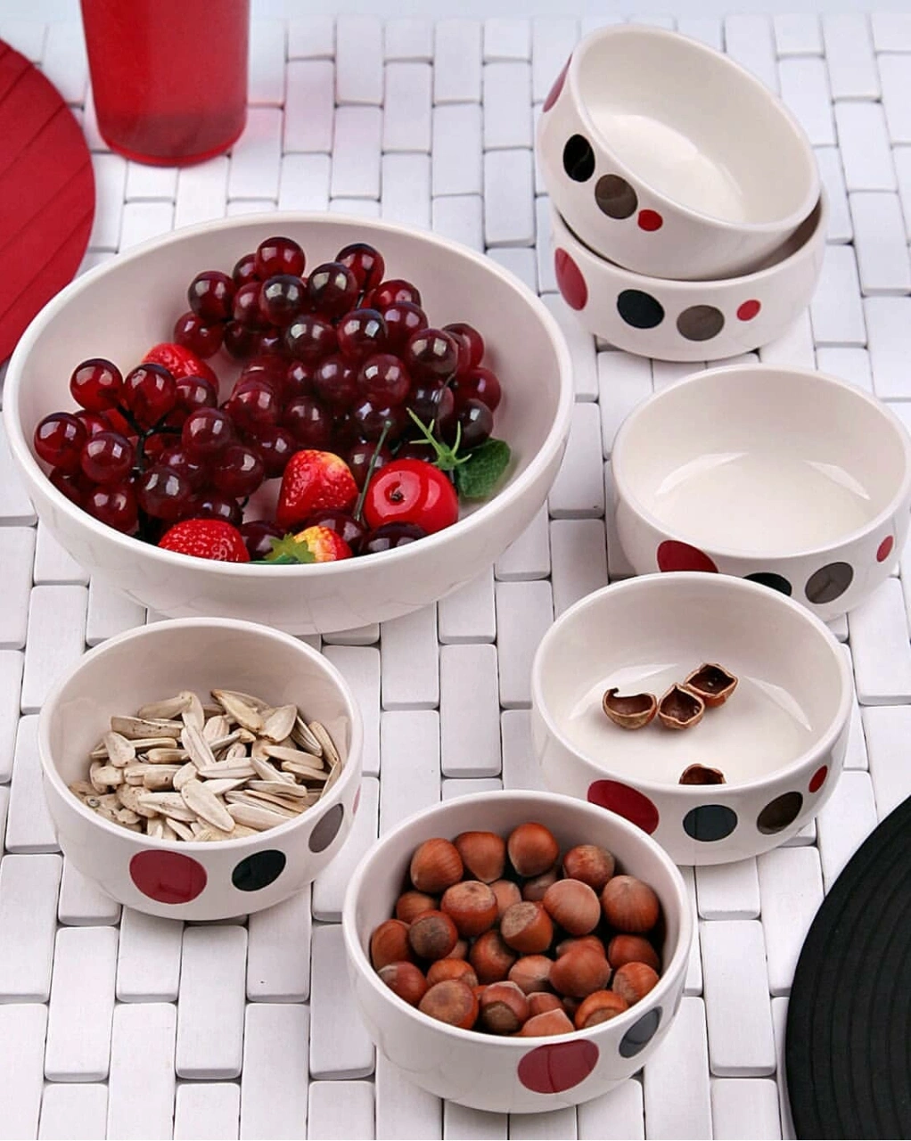 7'li Seramik Desenli Çerezlik Meyvelik Kase