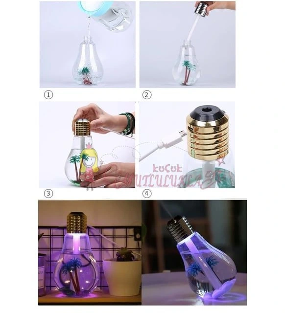 Ampul Şeklinde Led Işıklı Hava Nemlendirici Buhar Makinesi