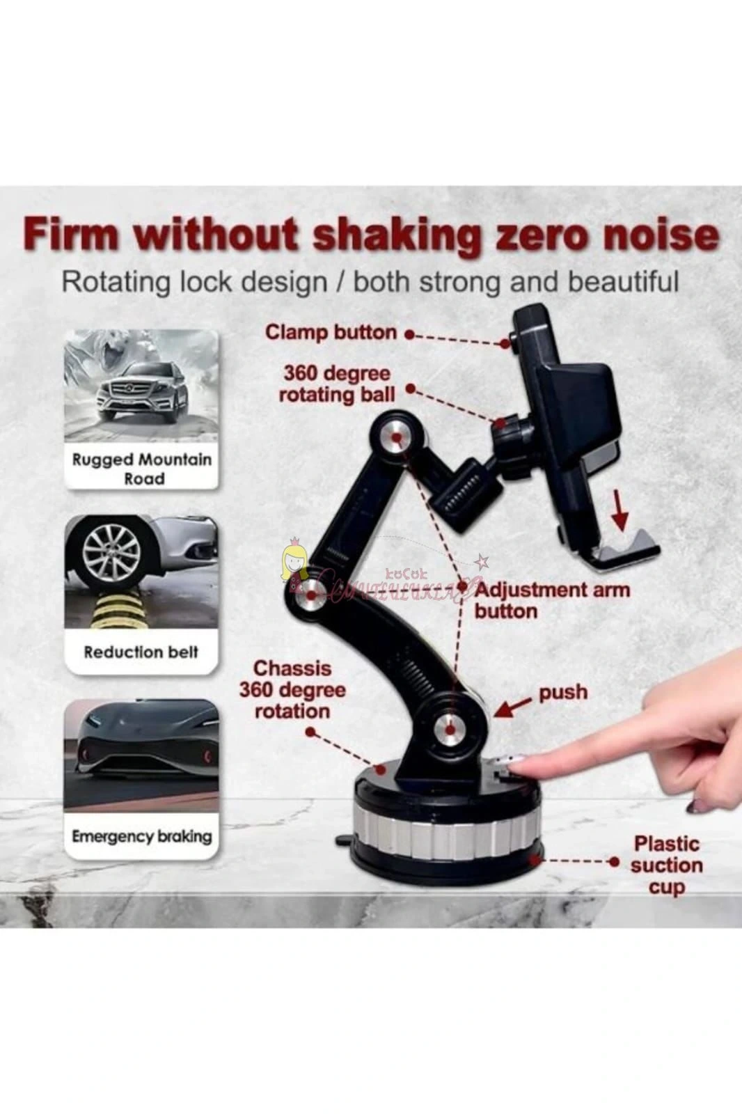 Araç içerisinde telefonunuzdaki hareketleri kolay takip edebilmenizi sağlayacak telefon tutucu Vantuzlu yapısıyla araç camına ya da torpidoya sabitleyebilirsiniz.