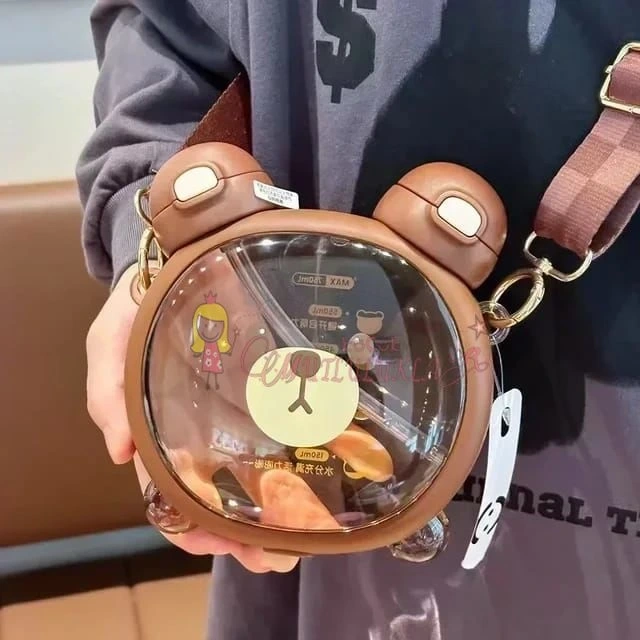 Sızdırmaz Sevimli Ayı Çift İçme Ağız Taşınabilir Karikatür Saman Bardak