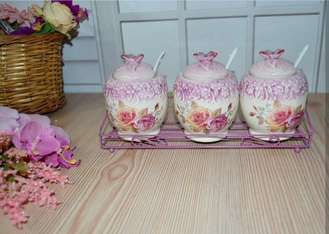 BAHARATLIK TAKIMI 3 lü PORSELEN BAHARATLIK ÇİÇEK FİGÜRLÜ Stokta