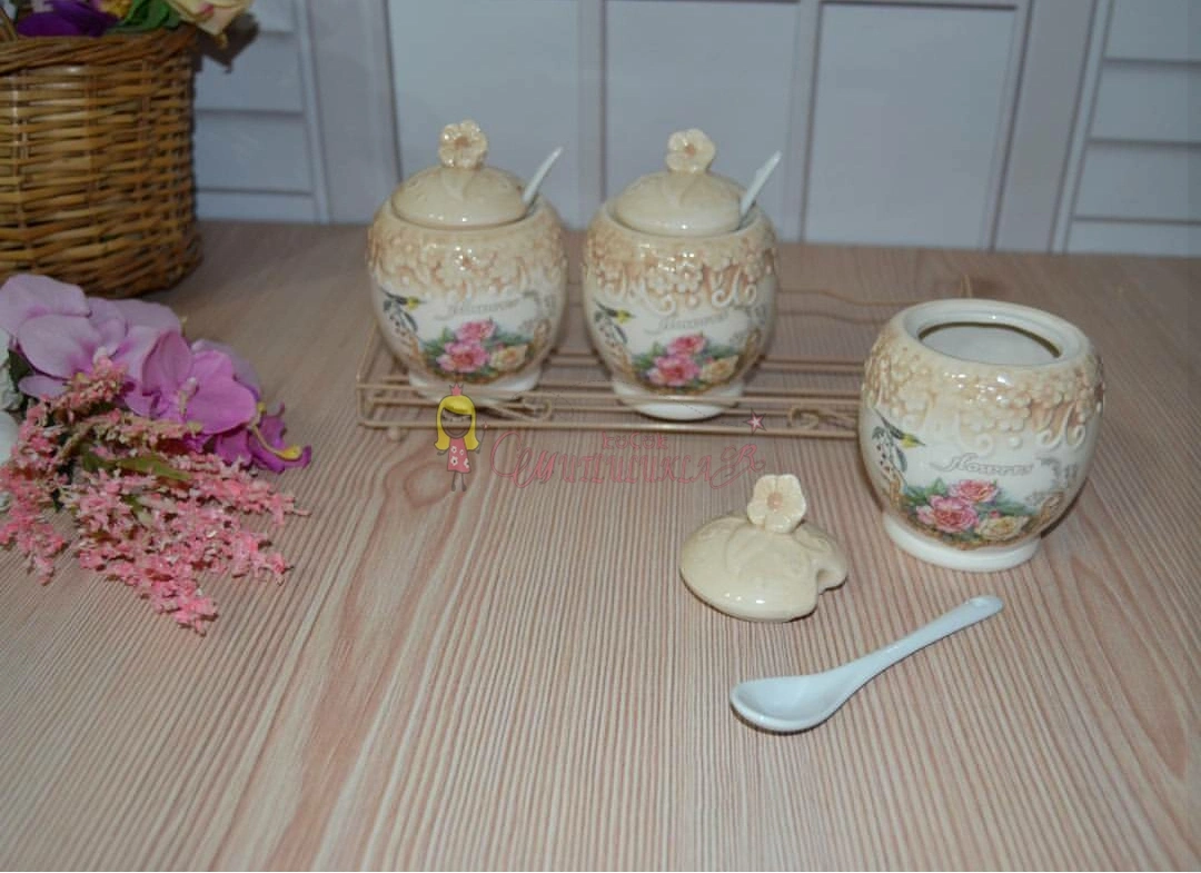 BAHARATLIK TAKIMI 3 lü PORSELEN BAHARATLIK ÇİÇEK FİGÜRLÜ Stokta
