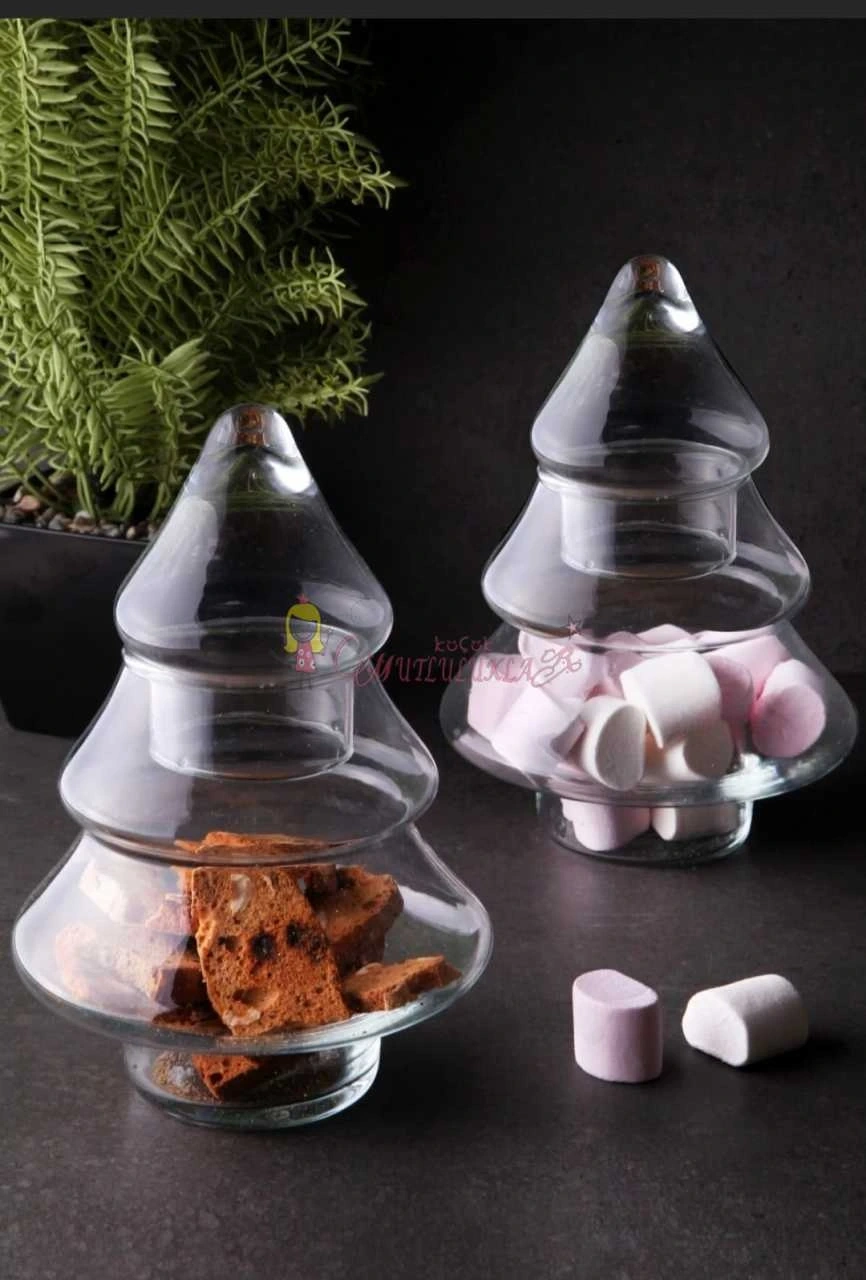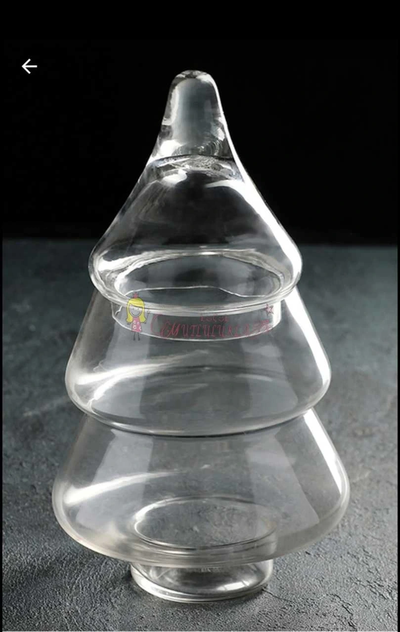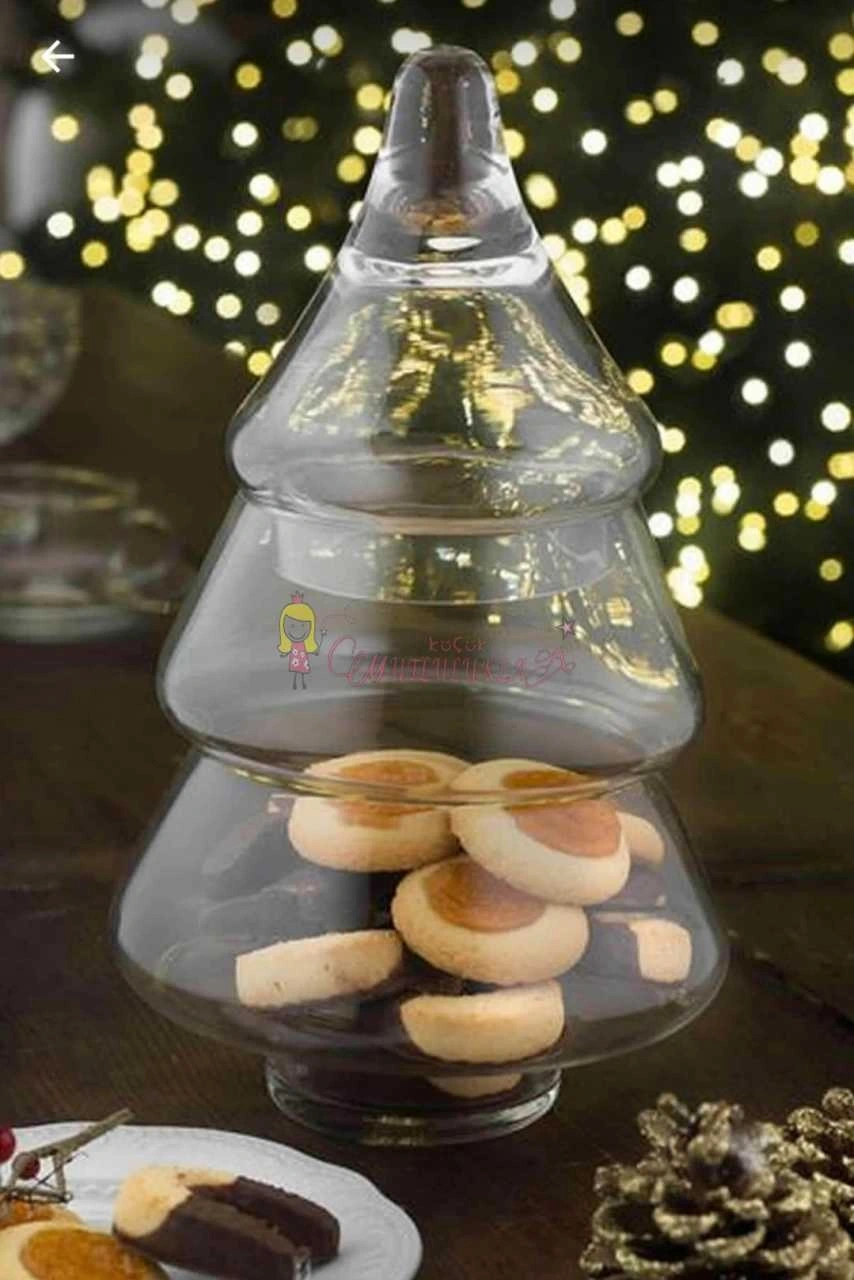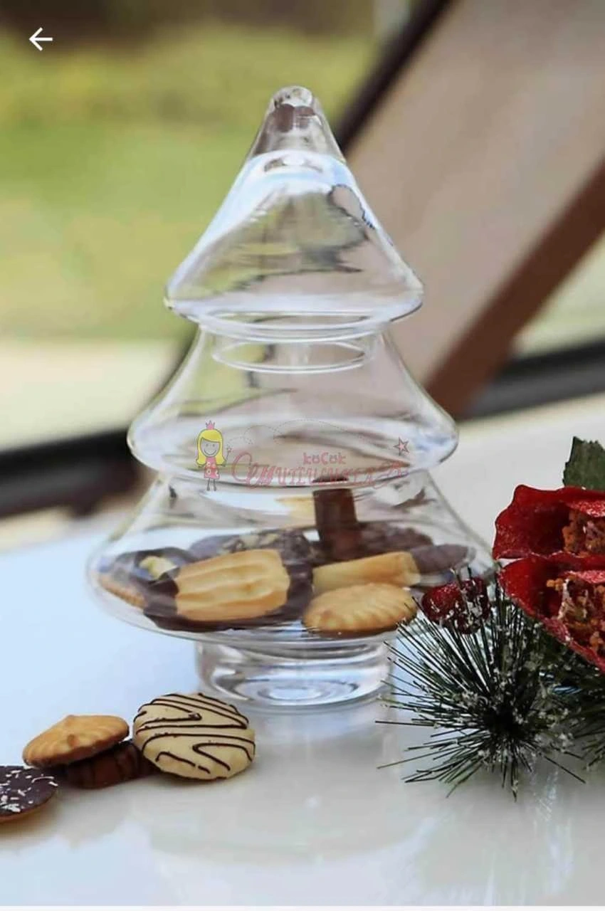 Çam Ağacı Şeklinde Kapaklı Cam Kurabiyelik & Şekerlik Drajelik