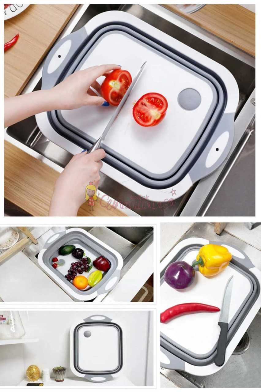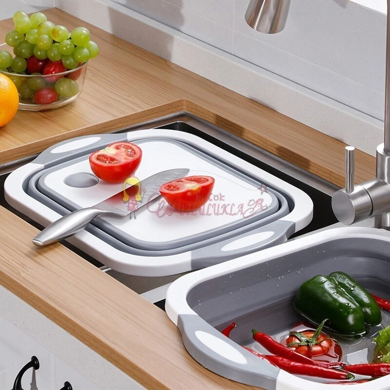 Kesme tahtası, sebze yıkama drenaj sepeti olarak kullanılabilir.