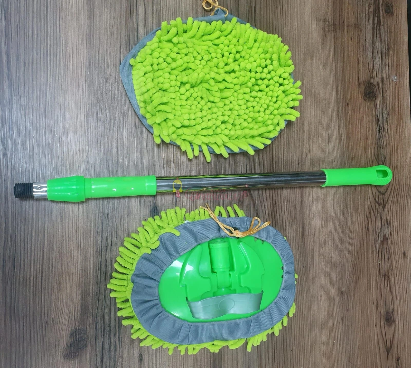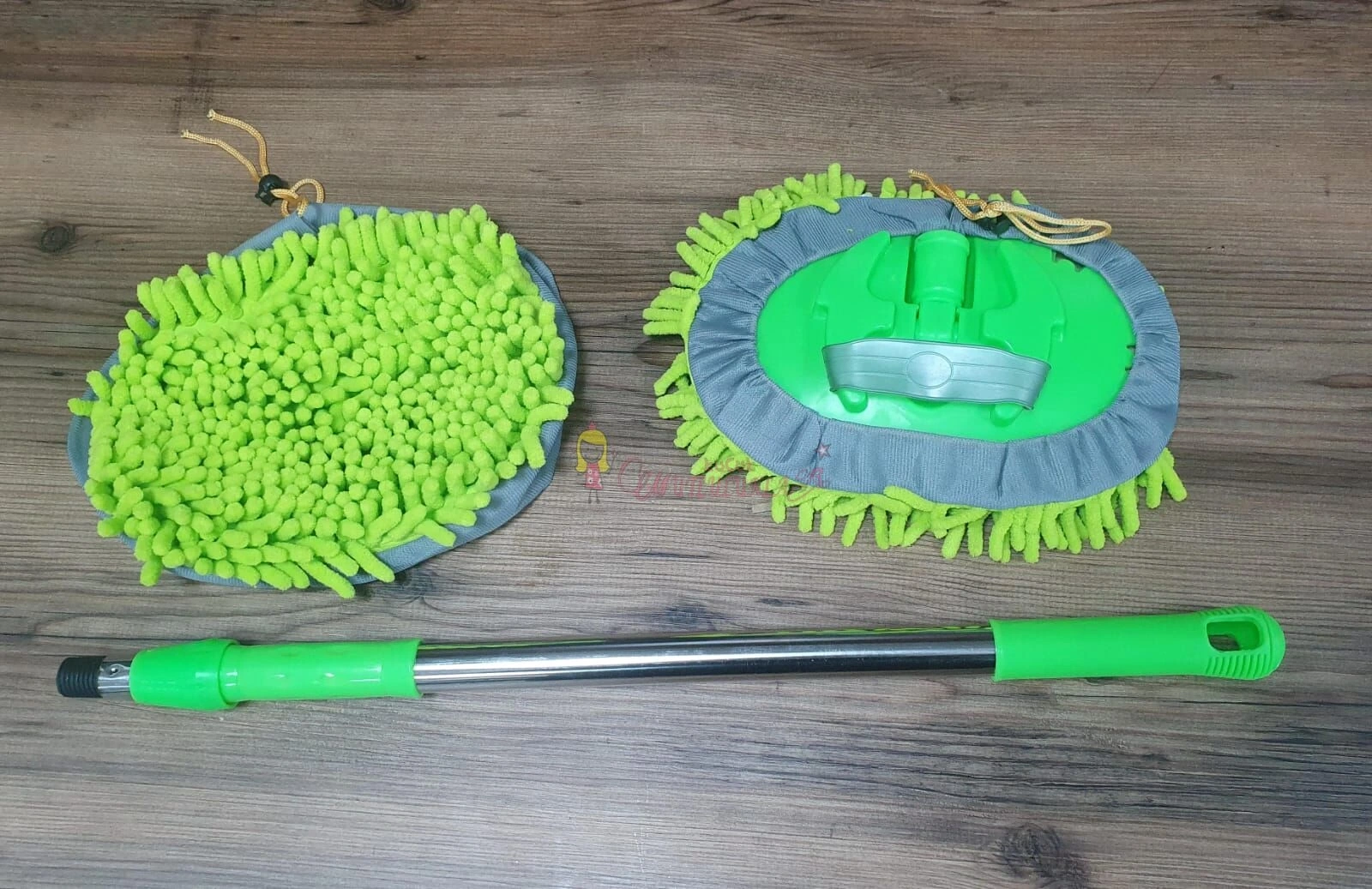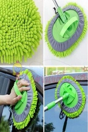 Çok Fonksiyonlu 2 In 1 Mikrofiber Araba Yıkama Fırçası Teleskopik Uzun Saplı Detay Fırçası Oto Mopu ( tek renk yeşil )