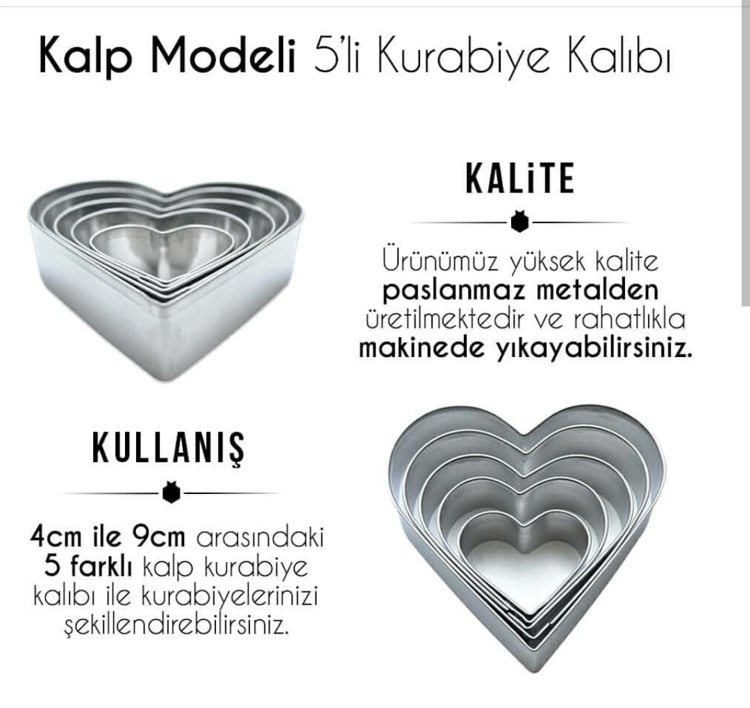DÜZ KALP 5 PARÇA KURABİYE KALIBI