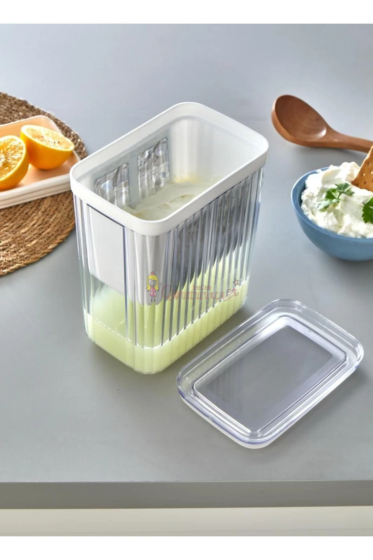 - Evde süzme yoğurt yapmanın kolaylığını yaşayın; bu pratik aparat, soya sütü veya peynir altı suyunu hızlıca ayırmanızı sağlar.- İki parçadan oluşan set, hem süzme yoğurt yapımında hem de meyve suyu hazırlama işlemlerinde size yardımcı olur.- Dayanıklı plastik materyalden üretilmiş olan bu aparat, uzun süreli kullanım için idealdir.