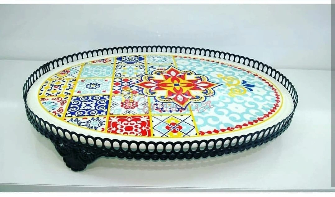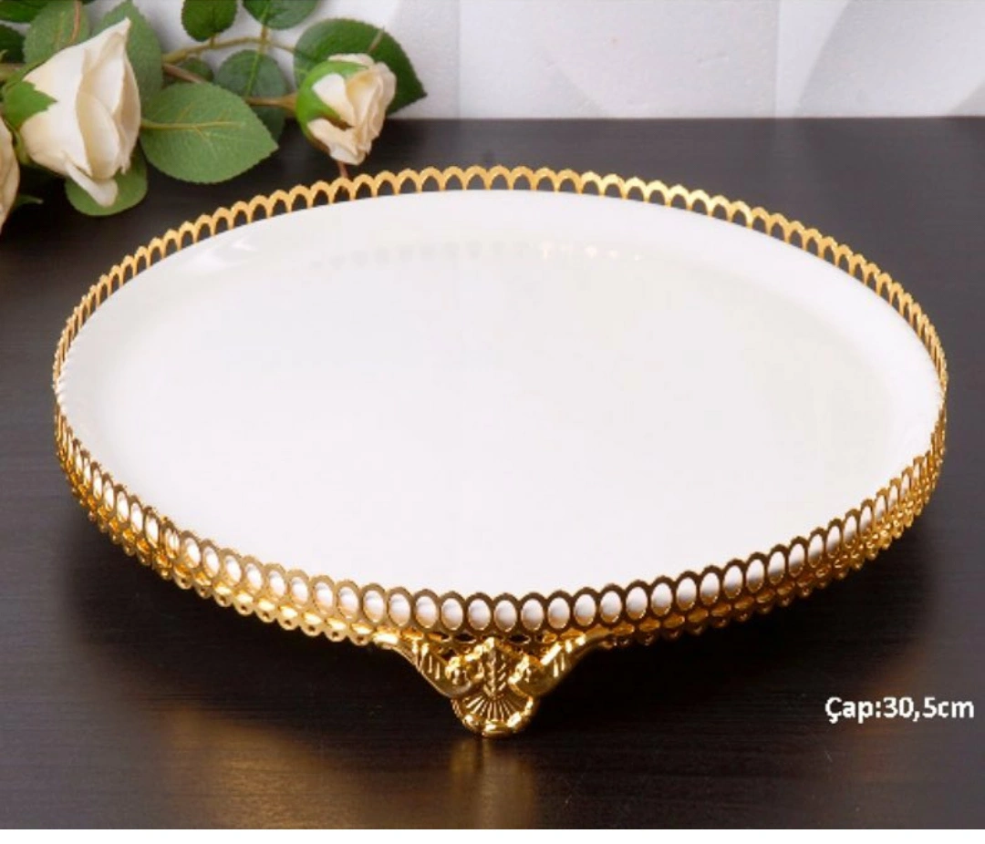 GOLD DETAYLI BÜYÜK BOY YUVARLAK SUNUM TABAĞI