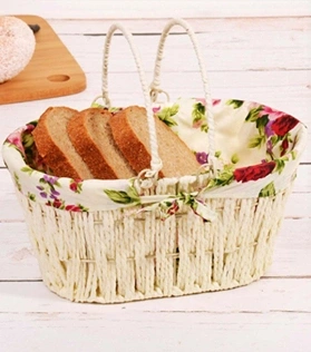 Hasır Örme Üzeri Kumaş Kaplama Ekmek Sepeti