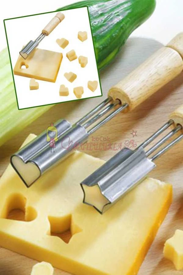 Yıldız kalp Şeklinde Peynir Kesici Yiyeceklerinize şekil vermek hiç bu kadar kolay ve pratik olmamıştı, mutlaka denemelisiniz.Metal bıçaklı, ahşap saplı şekilli bıçaklar.Paket Iceriği;1 ad. Kalp Veya Yıldız şekilli ürün gönderilecektir.