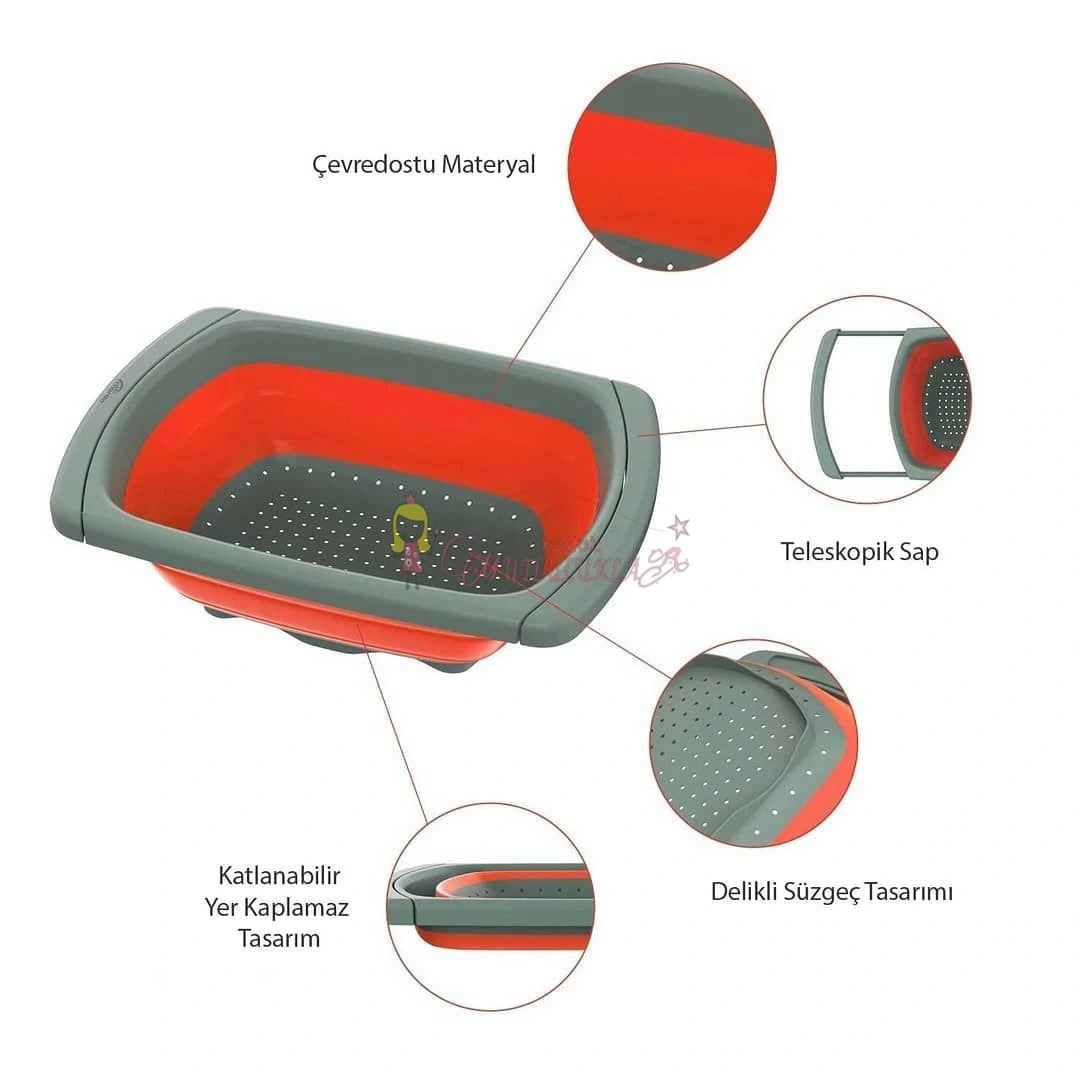 Mutfağınızda kolay kullanımı ile yer edecek Ayarlanabilir Süzgeç ile ;Lavabonuzda Sebze,Meyve ve bakliyatlarınızı pratik bir şekilde dökmeden yıkayabilirsiniz.
