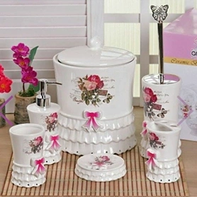 6 Lı Kelebek Desenli Seramik Banyo Seti