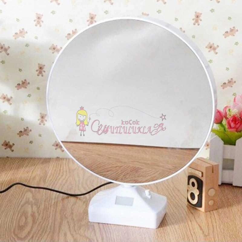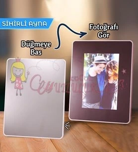 Işıksız hali ayna şeklindedir. Üzerindeki düğmesine basıldığında içerisindeki fotoğraf görünür ve led ışıklar yanar.