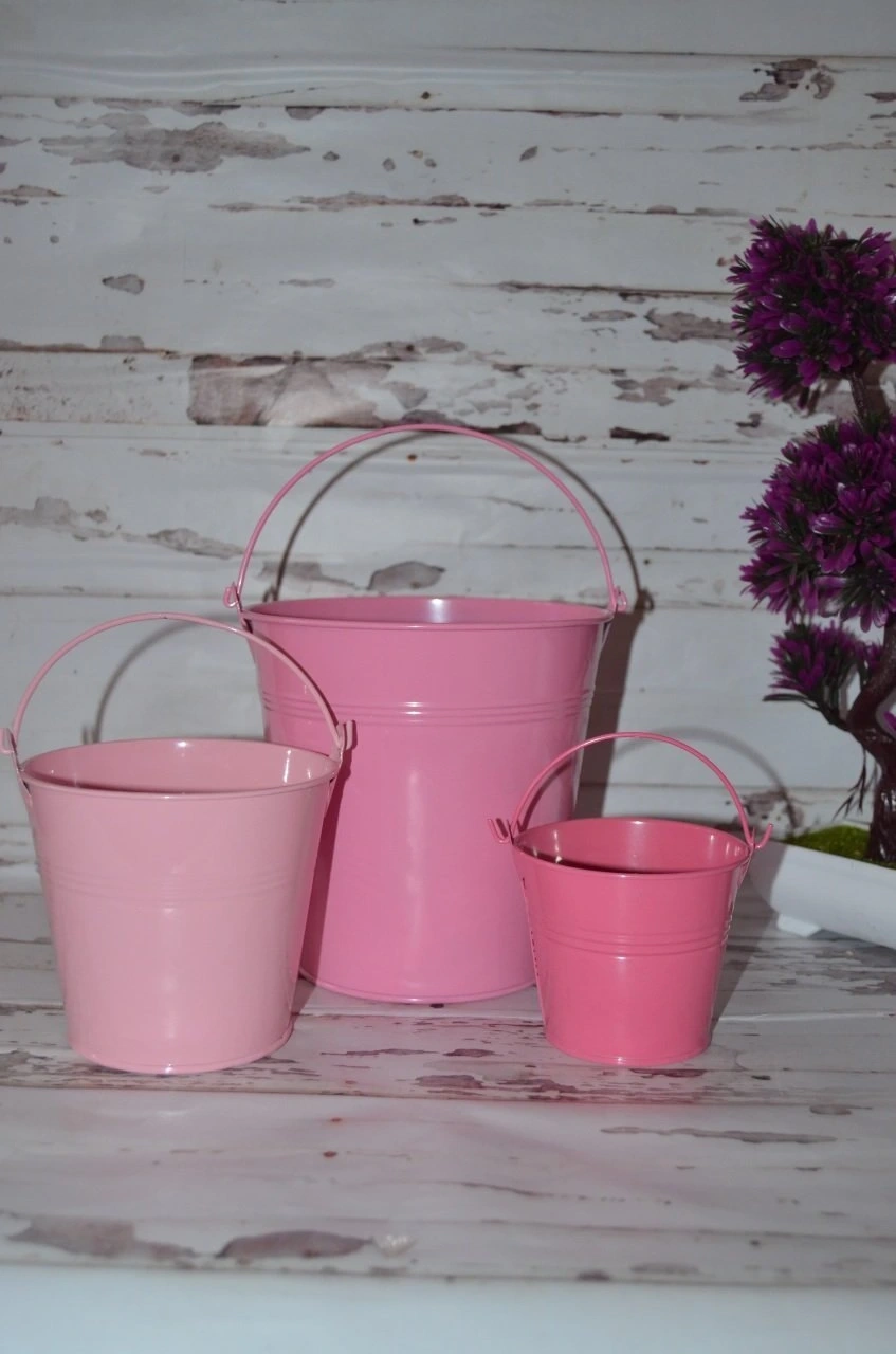 Büyük Boy Metal kova Ölçüsü 15 x 11 cm Pembe fusya beyaz mavi renk secengiyle