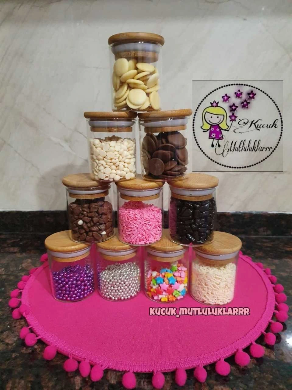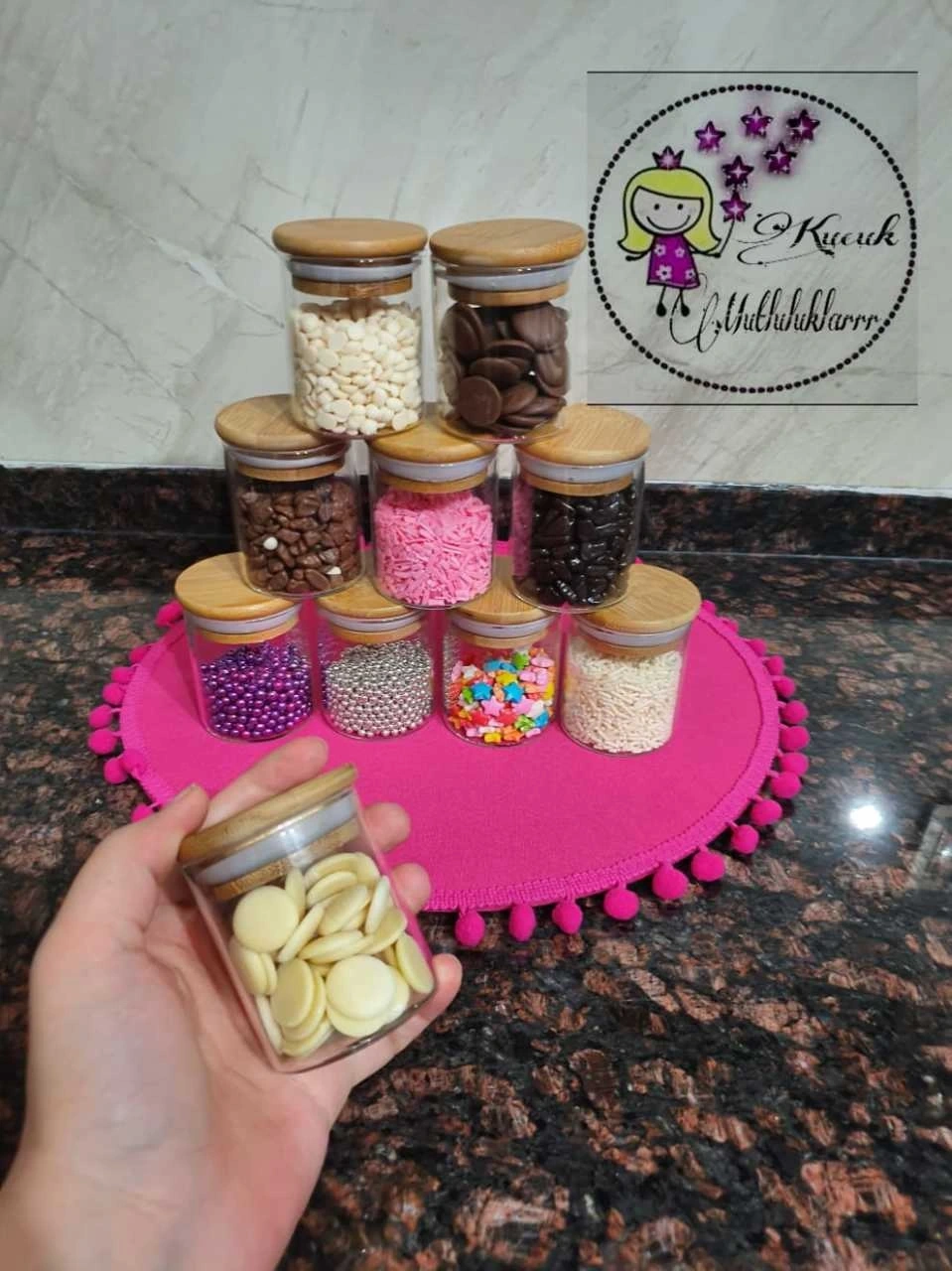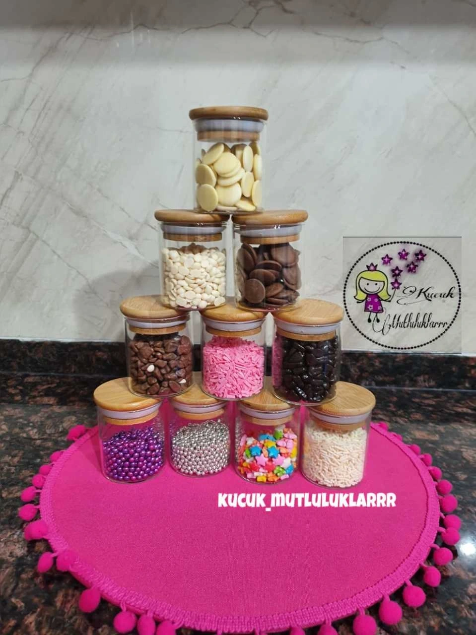 Mini Bambu Kapaklı Baharatliklar Stokta Malzemesi borosilikat camdir.☑