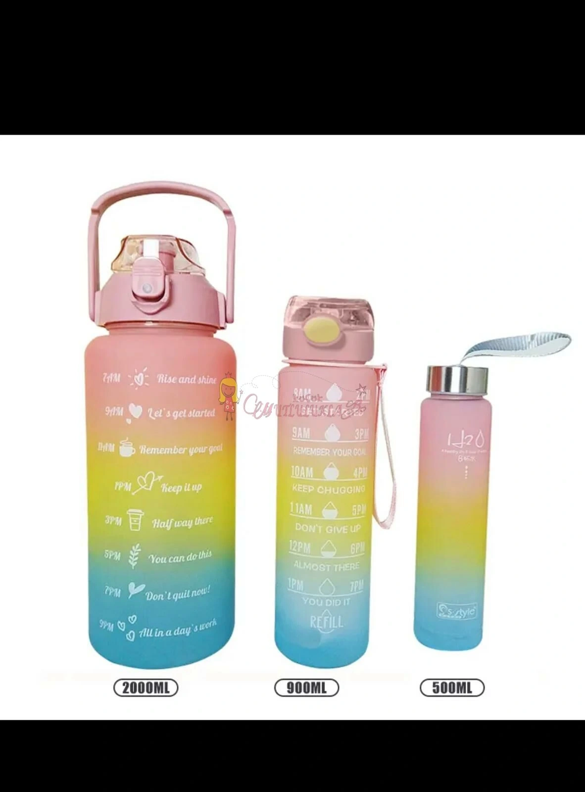 Motivasyonel 3lü Set Su Matarası Su Şişesi Suluk 2lt+900ml+500ml Tritan Spor Salonu Su Şişesi Suluk