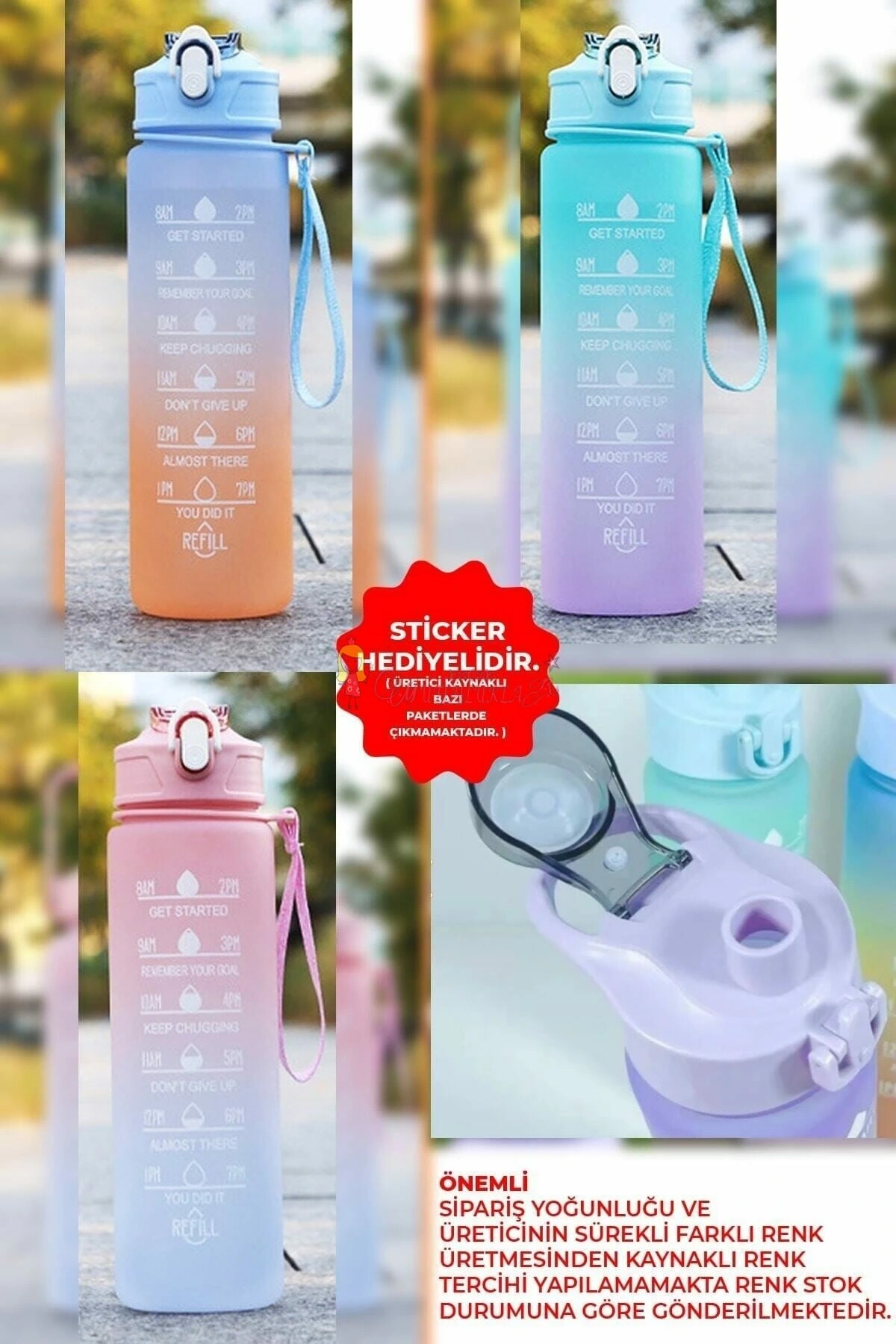 • Sağlıklı Tritan 2000 ml (PİPETLİ) +900 ml (PİPETLİ) 500 ml (PİPETSİZ) Motivasyonel Zaman Çizelgeli Su Matarası