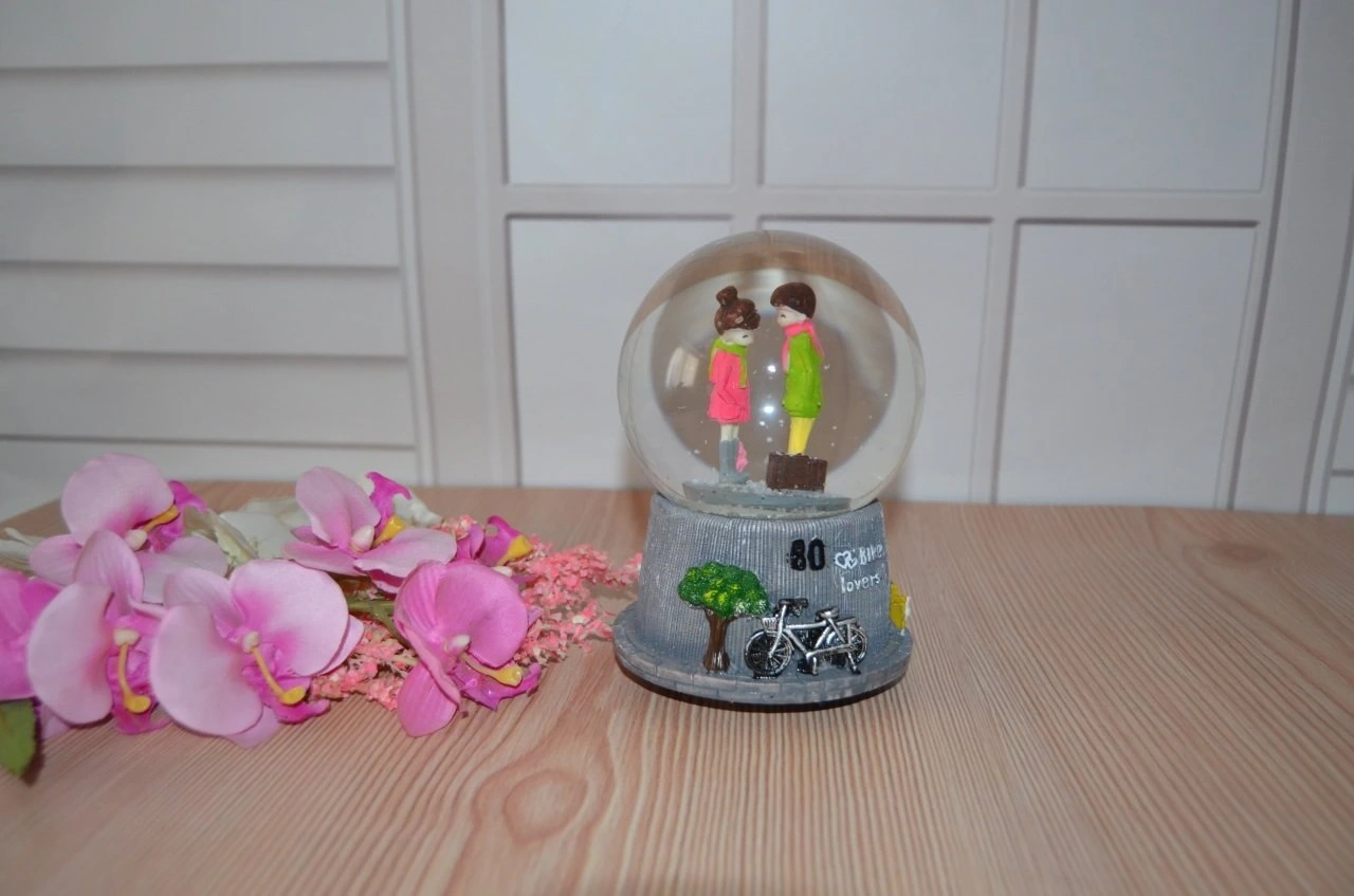 Küre kalın bir cam fanus ve alt tarafı kaliteli polyester malzemeden üretilmiştir. Kürenin altında yer alan kurma kolunu çevirdiğinizde küre müzik eşliğinde dönerek bir süre de olsa sizi dünyevi dertlerden soyutlayarak mutlu ve huzurlu bir insan yapacaktır