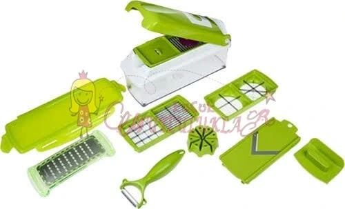 Doğrama ve Rendeleyici Set ile her türlü meyve sebze ve şarküteri ürünlerini saniyeler içinde dilimleyebilirsiniz. Salatalarınızı hem hızlı hemde farklı aparatları sayesinde istediğiniz şekilde doğrayabilirsiniz. Sevdiklerinize nefis sandviçler hazırlamak için sandviç malzemelerini doğrayabilirsiniz. Mutfakta uzun saatler geçirmekten nicer dicer plus sayesinde kurtulabilirsiniz. Sizi mutfaktaki bir yığın aparattan kurtarır. Oldukça keskin bıçaklara sahiptir. Yer kaplamaz tüm parçaları bir aradadır. - Temizleme butonlu üst kapak + bıçak haznesi - Kompakt hazne - Bıçak 6X6 mm / 12X12 ml - Elma dilim kesici bıçak - Bıçak bölme kapağı - Kusursuz çift yönlü soyucu - Güvenli yiyecek aparatı - Yiyeceklerin tazeliğini koruyan kapak - 3 parçadan oluşan V şeklinde dilimleme seti