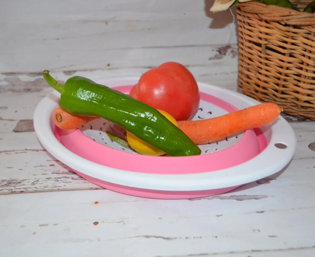 Oval Akordiyon süzgeç alt kısım silikondur Katlanabilir. pembe renk.