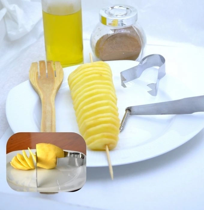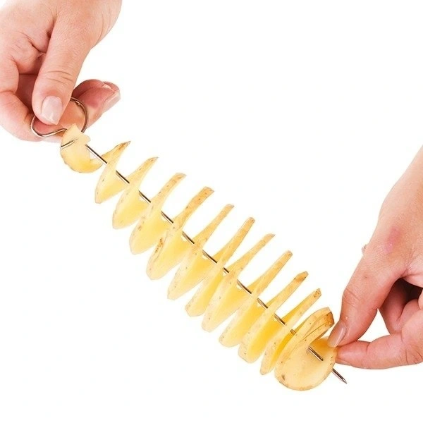 Patates Dilimleyici ve Cips Yapma Aleti Spiral dilimleyici ile doğradığınız patatesleri çubuklara takın, patates kızartmasının tadına varın. Farklı şekli ile herkesin ilgisini çekecek olan patates kızartmanız herkesin hoşuna gidecek. Spiral kesimli patatesinizi baharatlarla zenginleştirip yemeklerinizin yanında servis edebilirsiniz. Çocuklarınınız bu patates kızartmasına bayılacak. Ürünler paslanmaz çelikten yapılmıştır. Paket İçeriği 1 adet spiral patates dilimleyici 1 adet patates tutucu