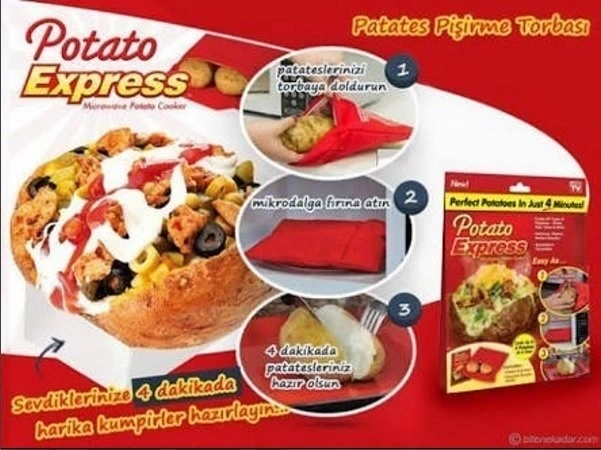 Bir seferde 4 patatesi torbanın içine yerleştirerek rahatlıkla pişirebilirsiniz.