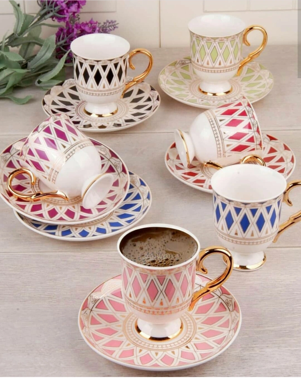 RENKLİ ALTIN YALDIZLI LUKS KAHVE FİNCANI