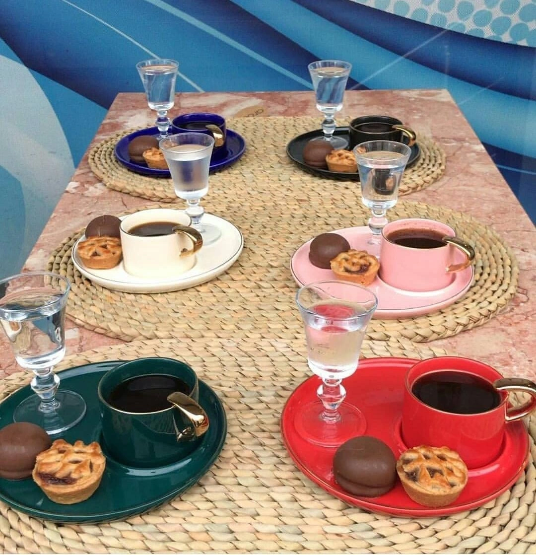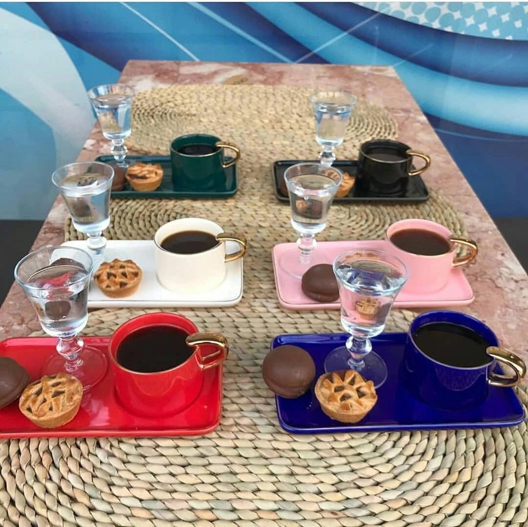 Renkli kahve takimı Stokta