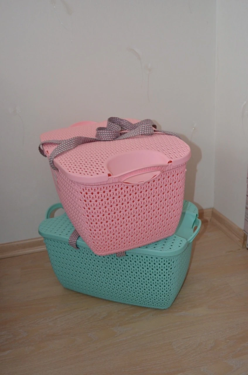 RENKLİ ÖRGÜ MODELLİ PİKNİK SEPETİ