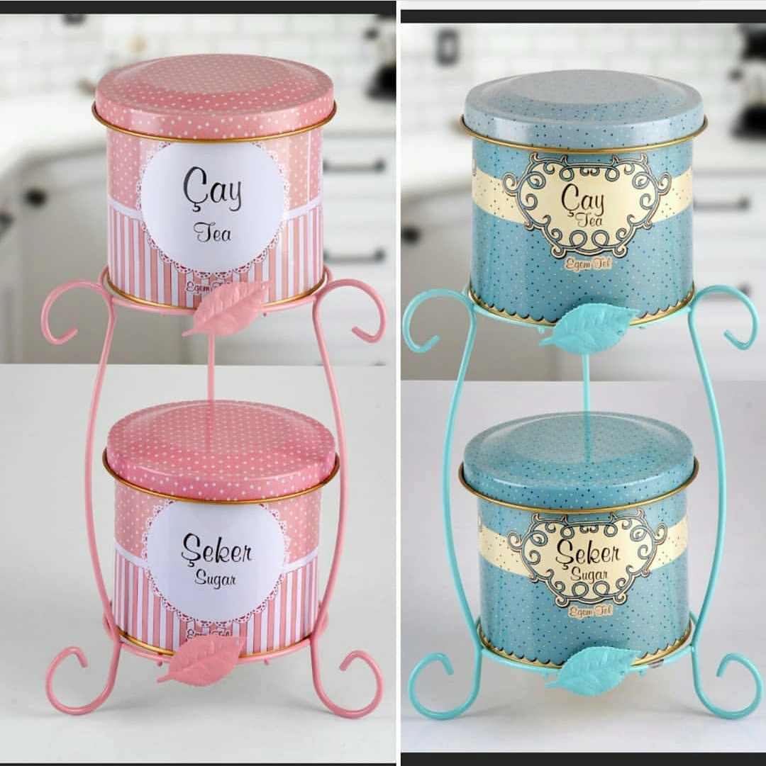 Standlı Lüx Metal Çay Şeker Kavanoz Seti Stokta