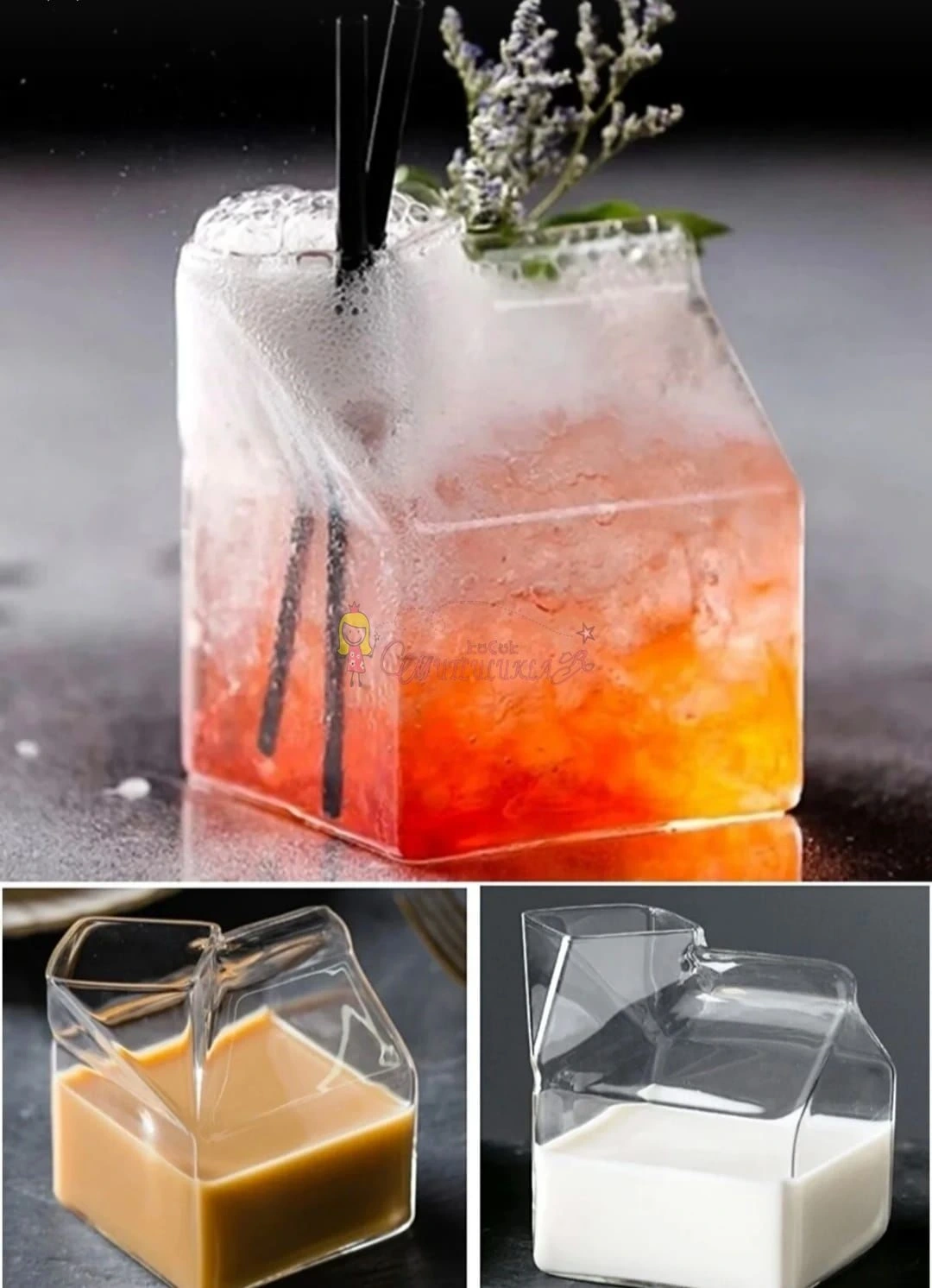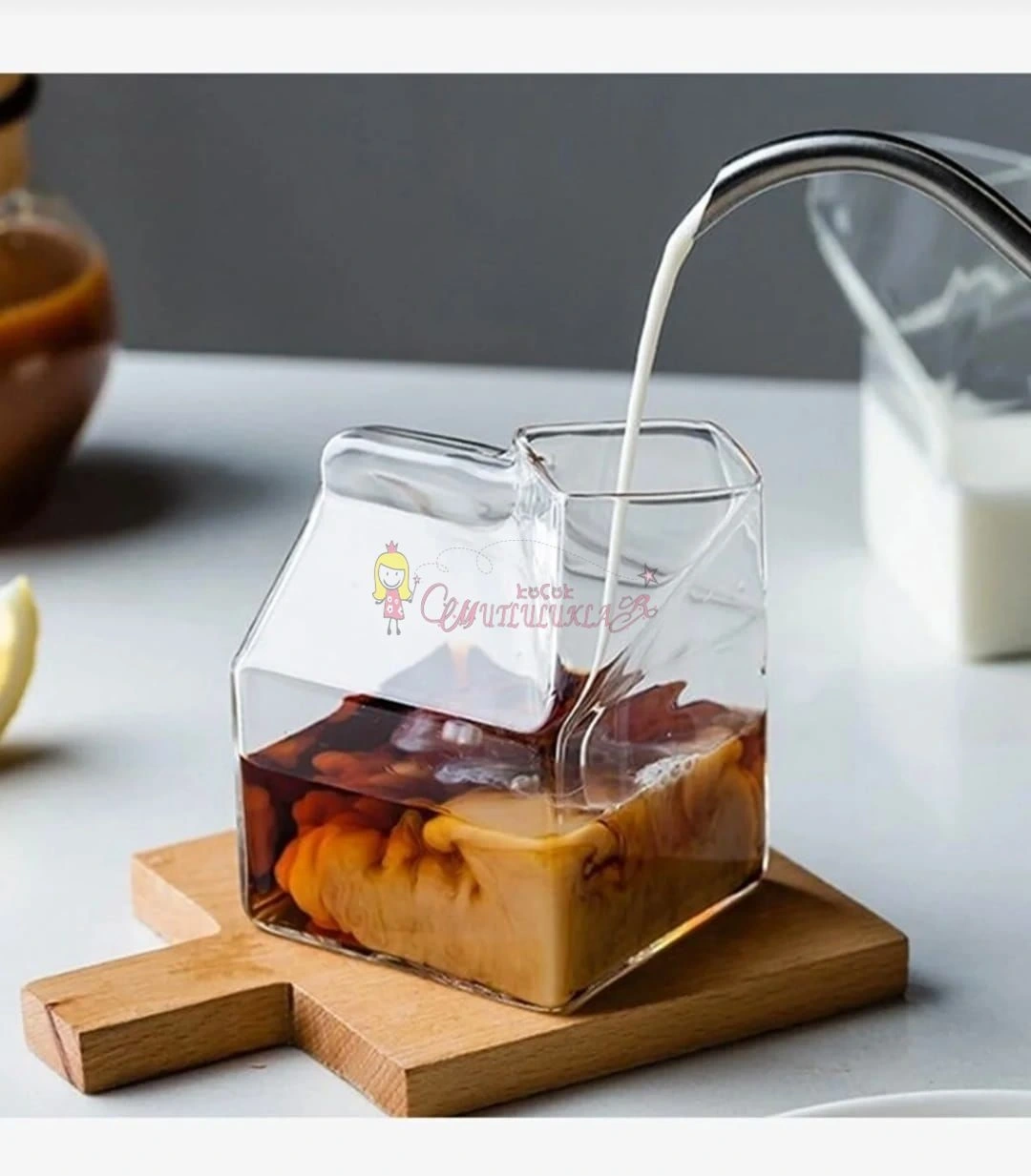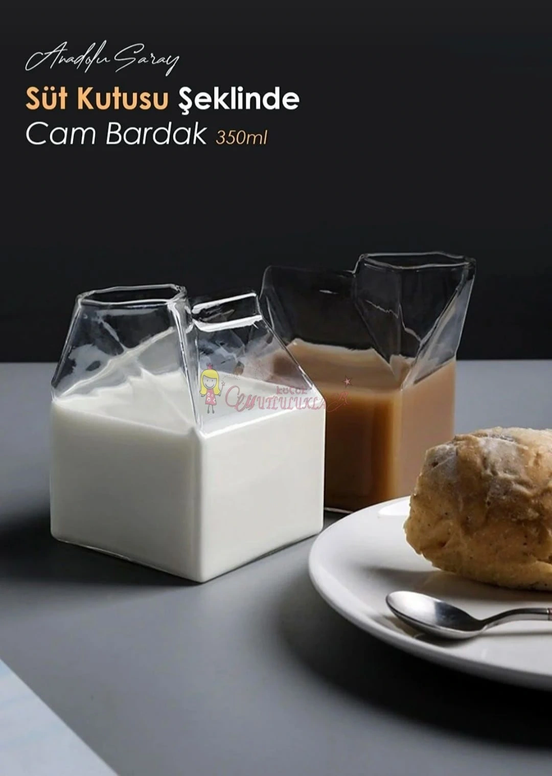 Süt Kutusu Şeklinde Bardak Isıya Dayanıklı Borosilikat Kahve Ve Sunum Bardağı