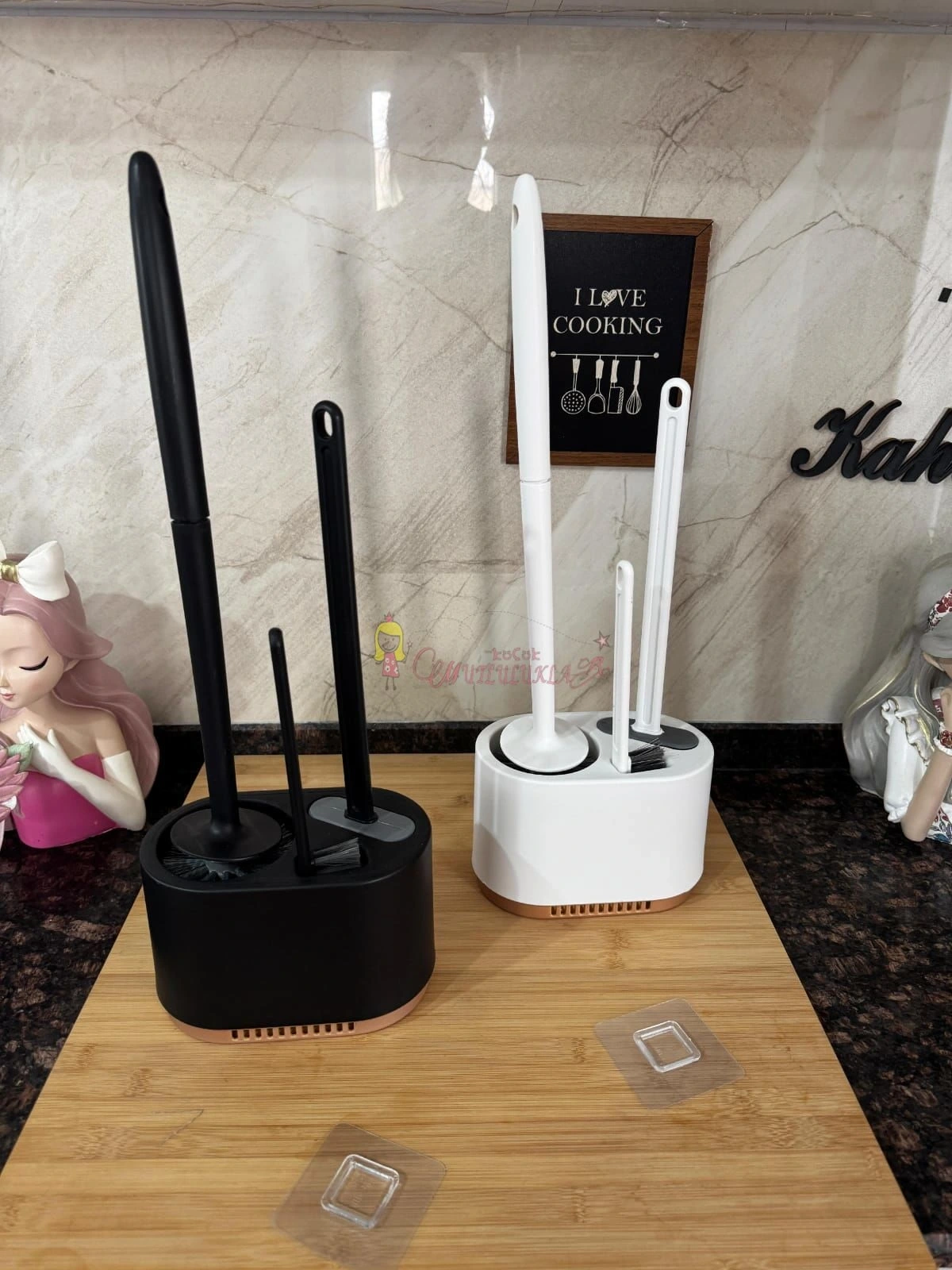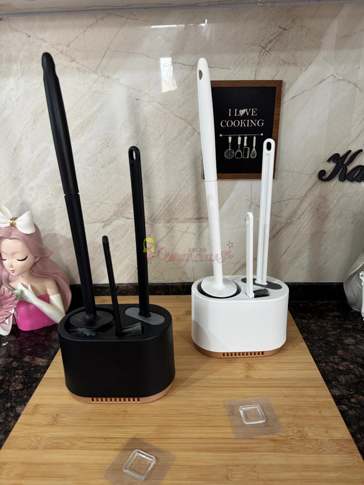Tuvalet Fırçası Seti Üçü Bir Arada Duvara Monte Stokta