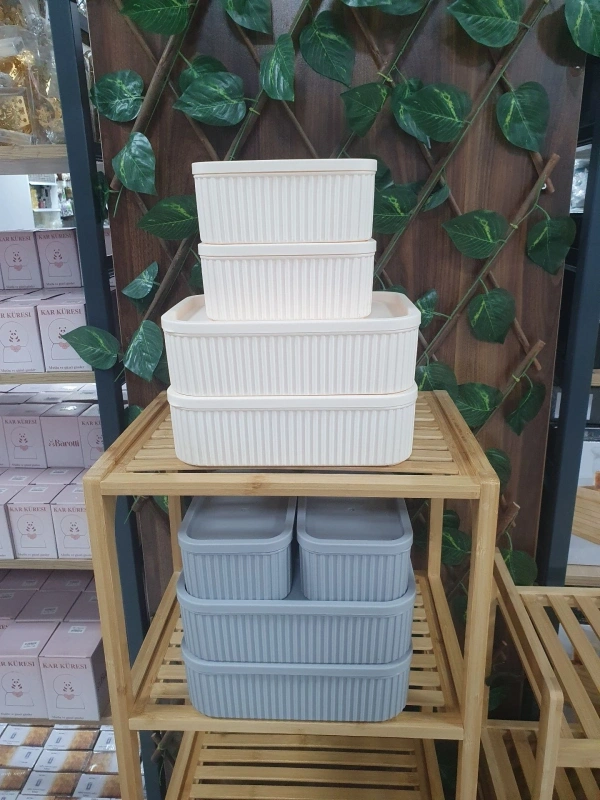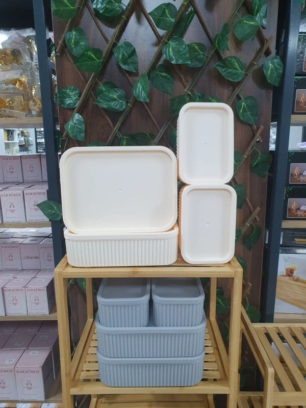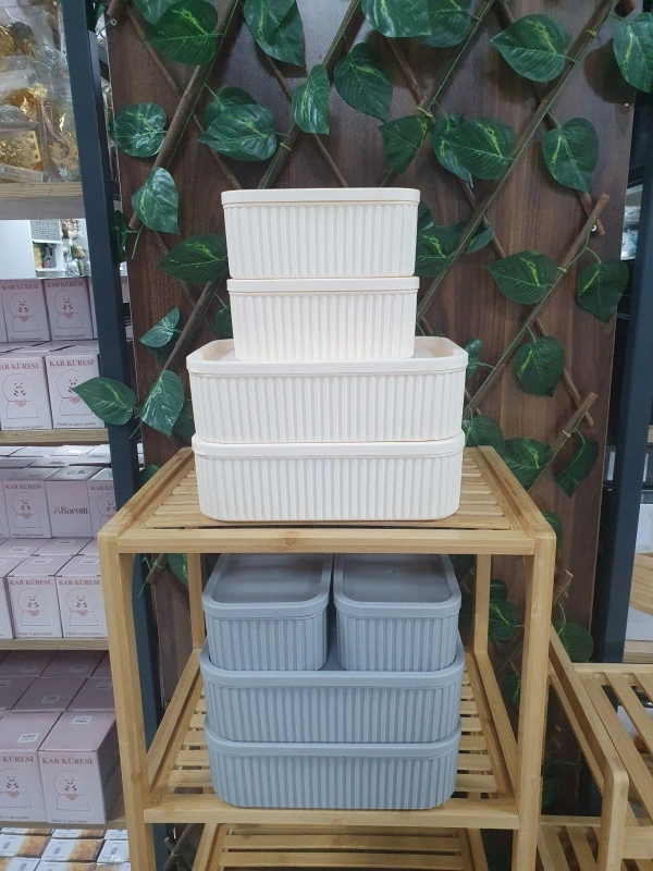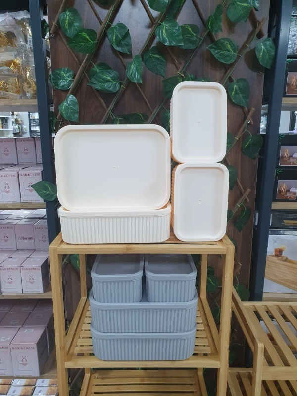 Valent 4'Lü Saklama Kabı Düzenleyici 2 ADET 3000ML 2 ADET 1250ML Krem - Gri